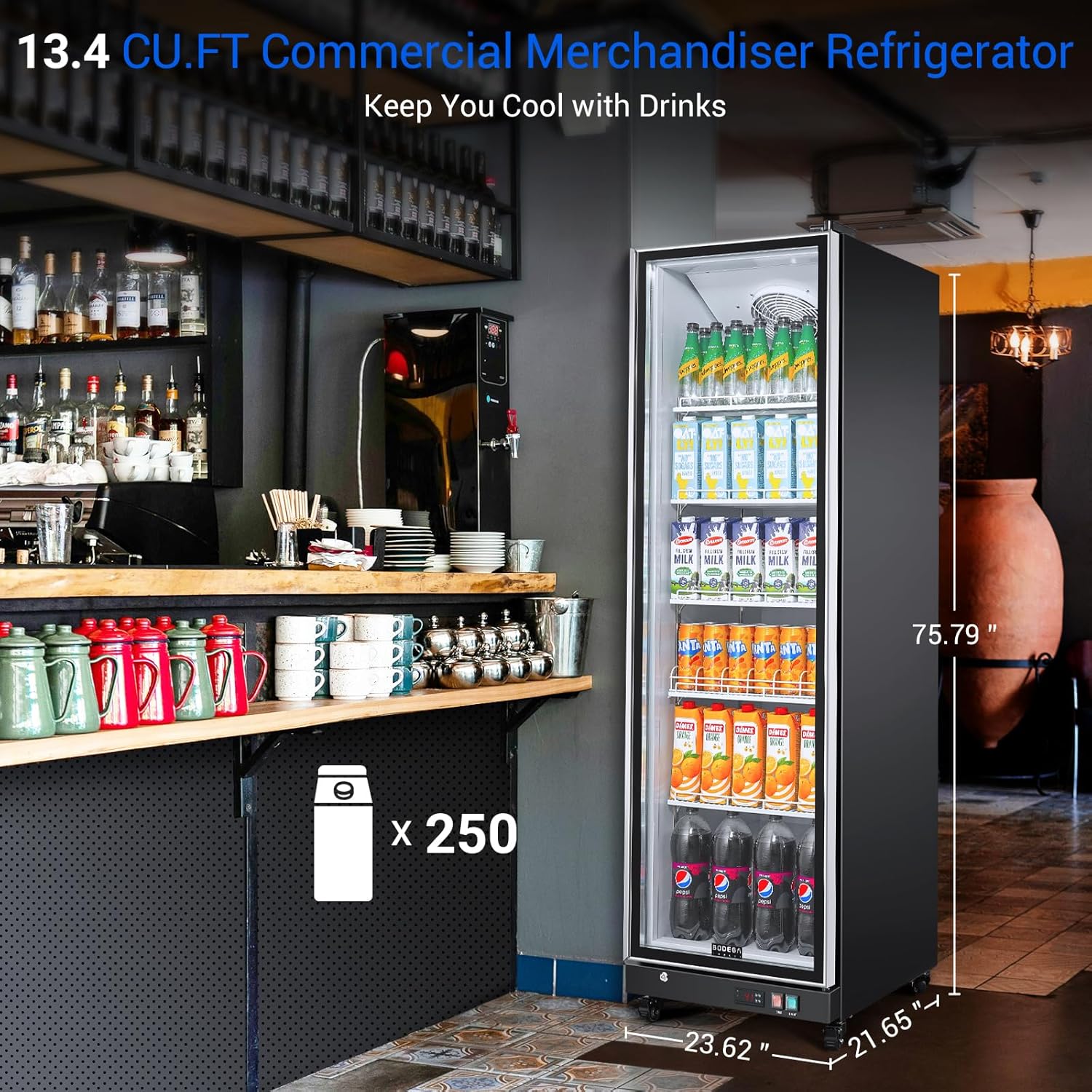 FAST COOLING&ENERGY-SAVING: BODEGACOLER 12.5 cu.ft commercial large beverage refrigerators with R600a environmentally friendly refrigerant and powerful compressor cooling.This commercial large beverage cooler adopts a powerful air-cooled frost free direct cooling system,a 20cm high air flow fan,ensuring precise airflow and accelerating cold air circulation,also automatic defrosting for clear display drinks or beer cans in your commercial store like convenience stores, supermarkets,lobby,nightclubs,etc