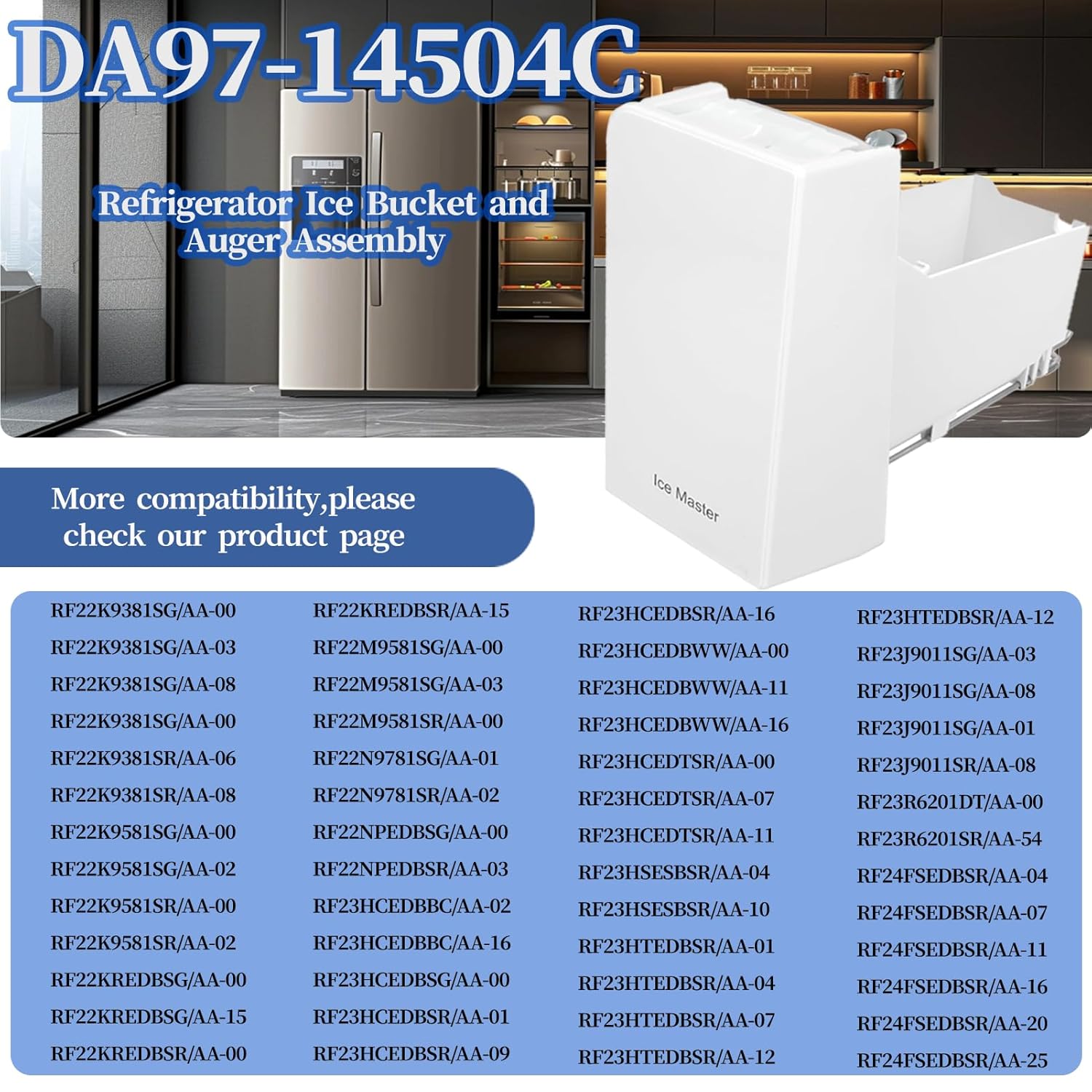 Reinforced Ice Dispensing System:Engineered with precision-aligned chute mechanisms, the DA97-14504C ice bucket ensures smoother cubed/crushed ice delivery compared to OEM trays. Its upgraded chute design eliminates jams and maintains consistent flow, making it ideal for Samsung refrigerator models like RF23J9011SR, RF23HTEDBSR, and RF24FSEDBSR.