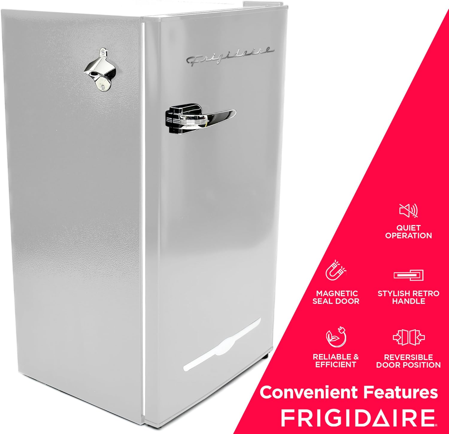 When you hear the Frigidaire name, immediately you think of quality built, affordable Kitchen products. The 3. 2 cu. ft. retro mini refrigerator is party ready with an attached bottle opener and enough room for any type of beverage or snack. The interior freezer compartment will keep ice at the ready or your frozen treat nice and chilled.