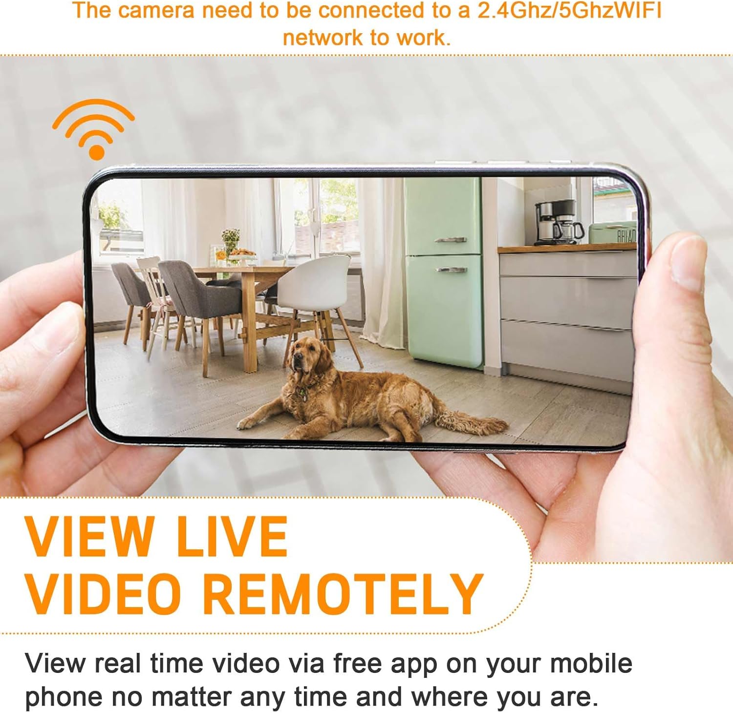 WiFi Camera & Remote Viewing: This wireless smart camera supports connecting to the internet, download the app and install the device according to the user manual. You can easily view the live feed of the lens through the mobile app even when you are working or traveling outside