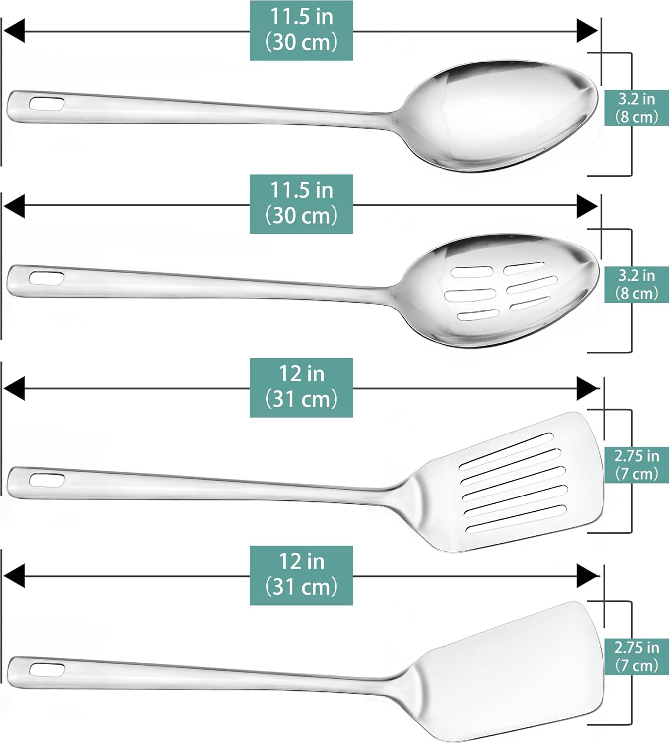 About 11.5-in cooking utensils set – This set includes 2 cooking spoons and 2 spatulas, suitable for serving and cooking.