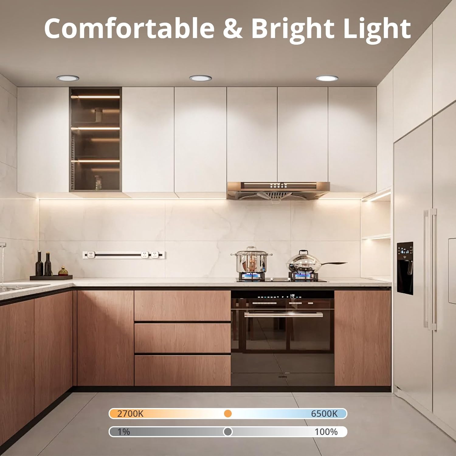 【Adjustable Lighting Options】 SMAVISTA Smart LED can lights support color changing, providing over unique colorful marquee light & 16 million vivid RGB colors & 5CCT dimmable warm to cool whites (2700K-6500K). 12W equivalent to 60W brightness, saving consumption up to 85% without losing brightness or color quality with high CRI 80+.
