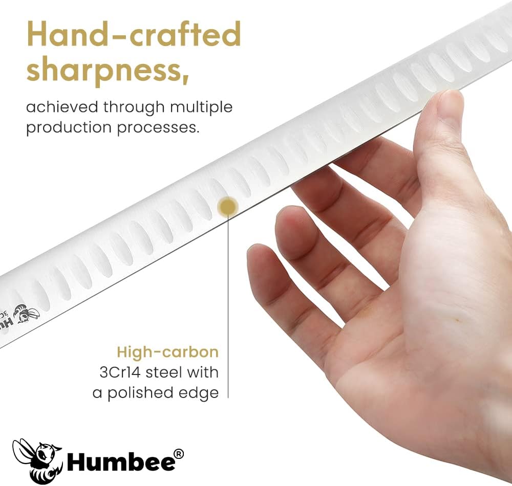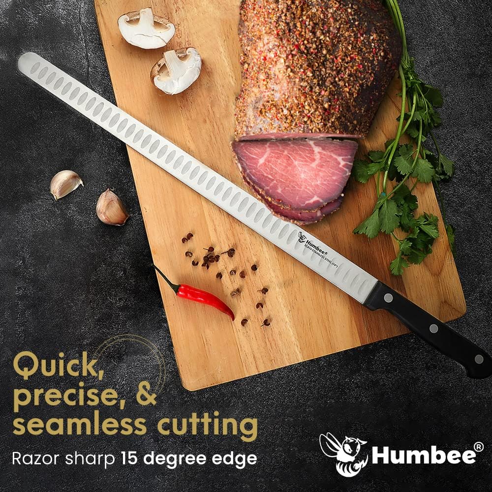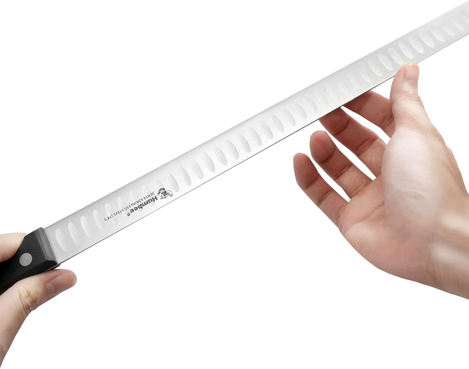 SLICING PRECISION WITH RAZOR-SHARP PROFILE: The 14-inch Granton edge blade is designed for smooth, effortless carving of brisket, turkey, ribs, and ham. The razor-sharp profile ensures minimal drag and ultimate slicing control.