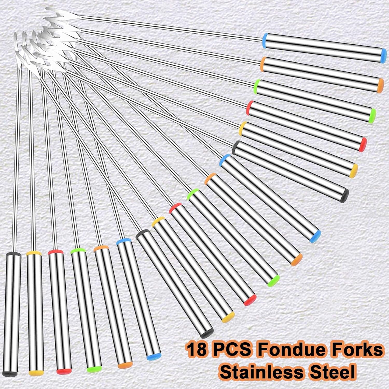 18 PCS Fondue Forks Set: The set includes 18 pieces of 9.3-inch fondue forks and a black drawstring bag, which are reusable and easy to store, suitable for carrying around