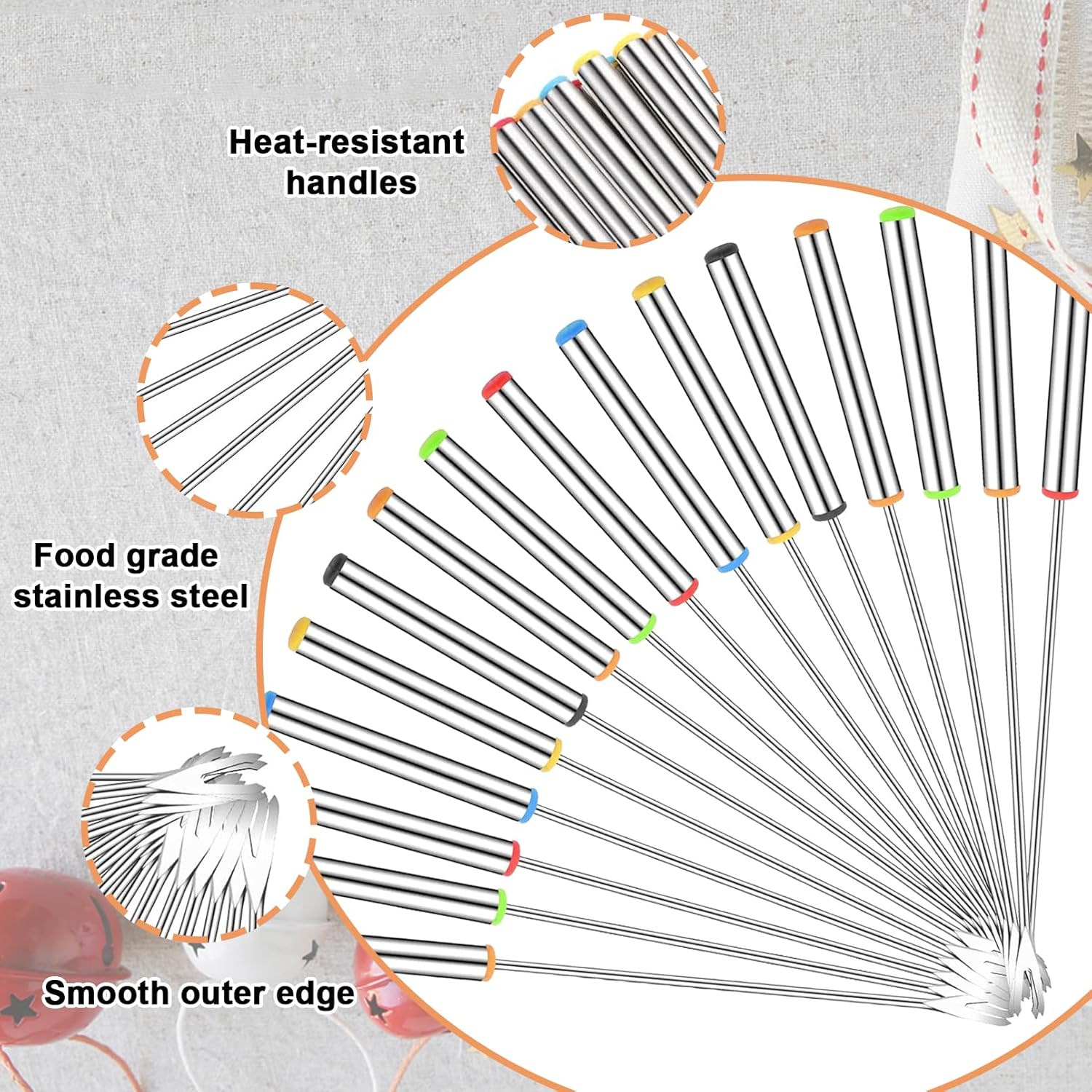 Wide Application: These stainless steel fondue forks are perfect for fruits, marshmallows, bread, vegetables, salads, desserts, chocolate, cheese, barbecue, and are essential tableware for picnics, camping, birthday parties, family gatherings