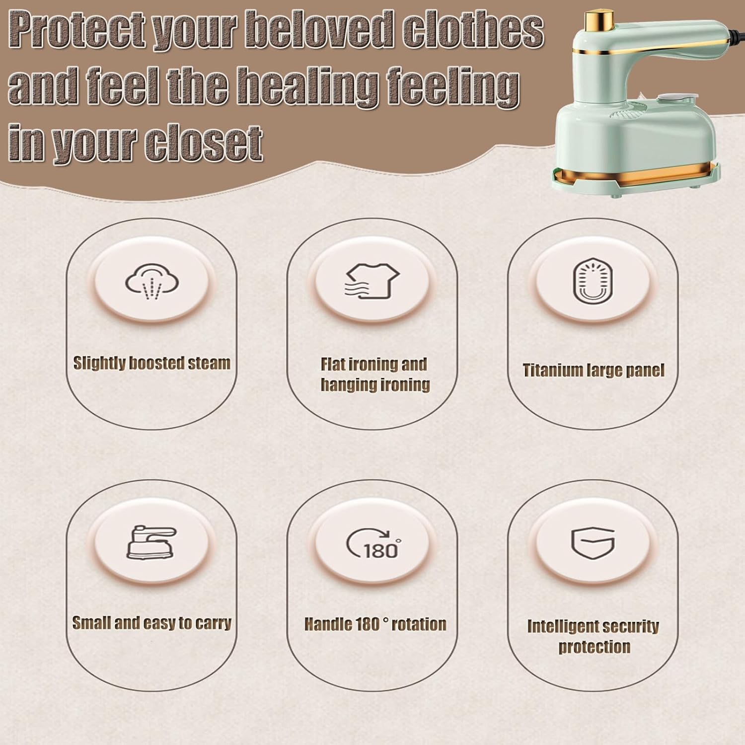 Portable Steam lron, 2-in-1 Steamer and Iron, 1000W Fast Heating in 5 Seconds, Mini Travel Iron for Clothes, Lightweight & Compact for Home, Business Trips, Hotels (Green)