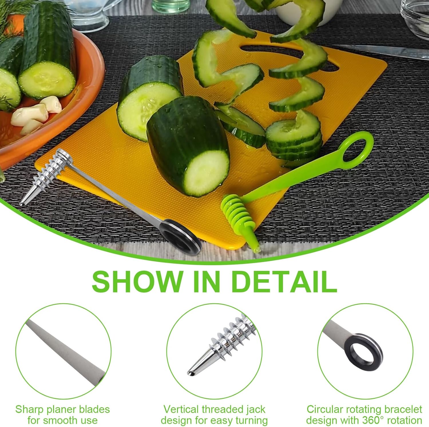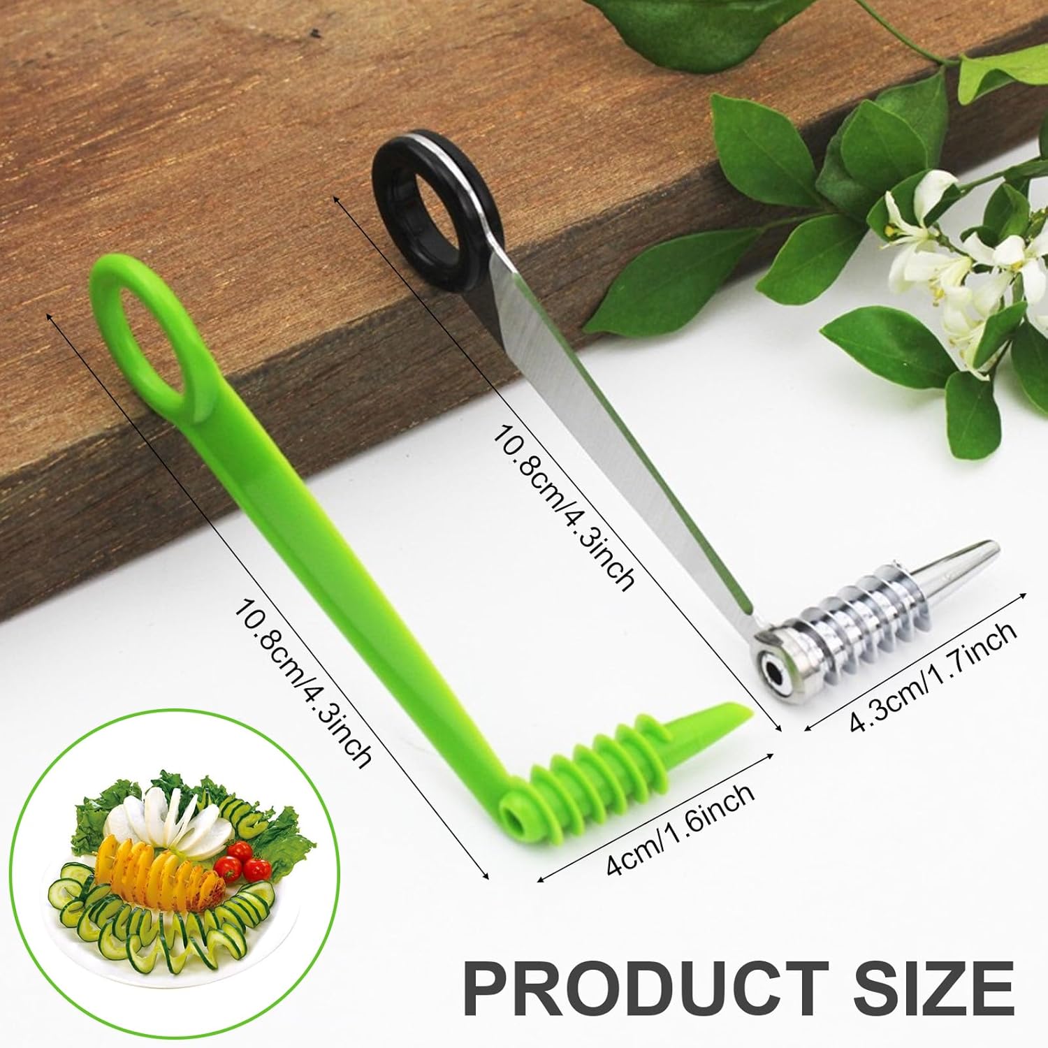 【Complete 2-Pack Design】:Includes one stainless steel spiral cutter and one plastic spiral knife, giving you versatile options to slice and decorate potatoes, cucumbers, carrots, and other veggies with ease