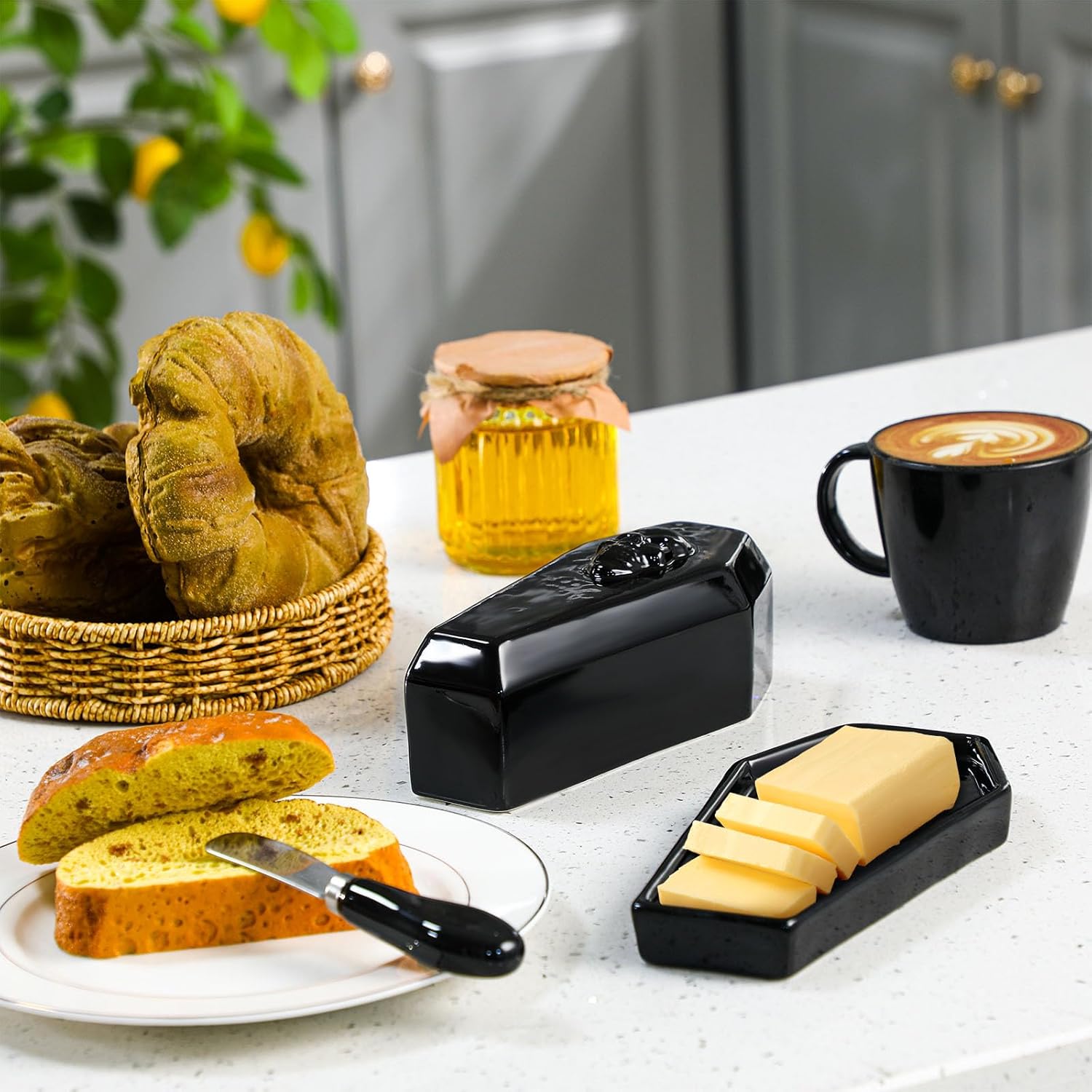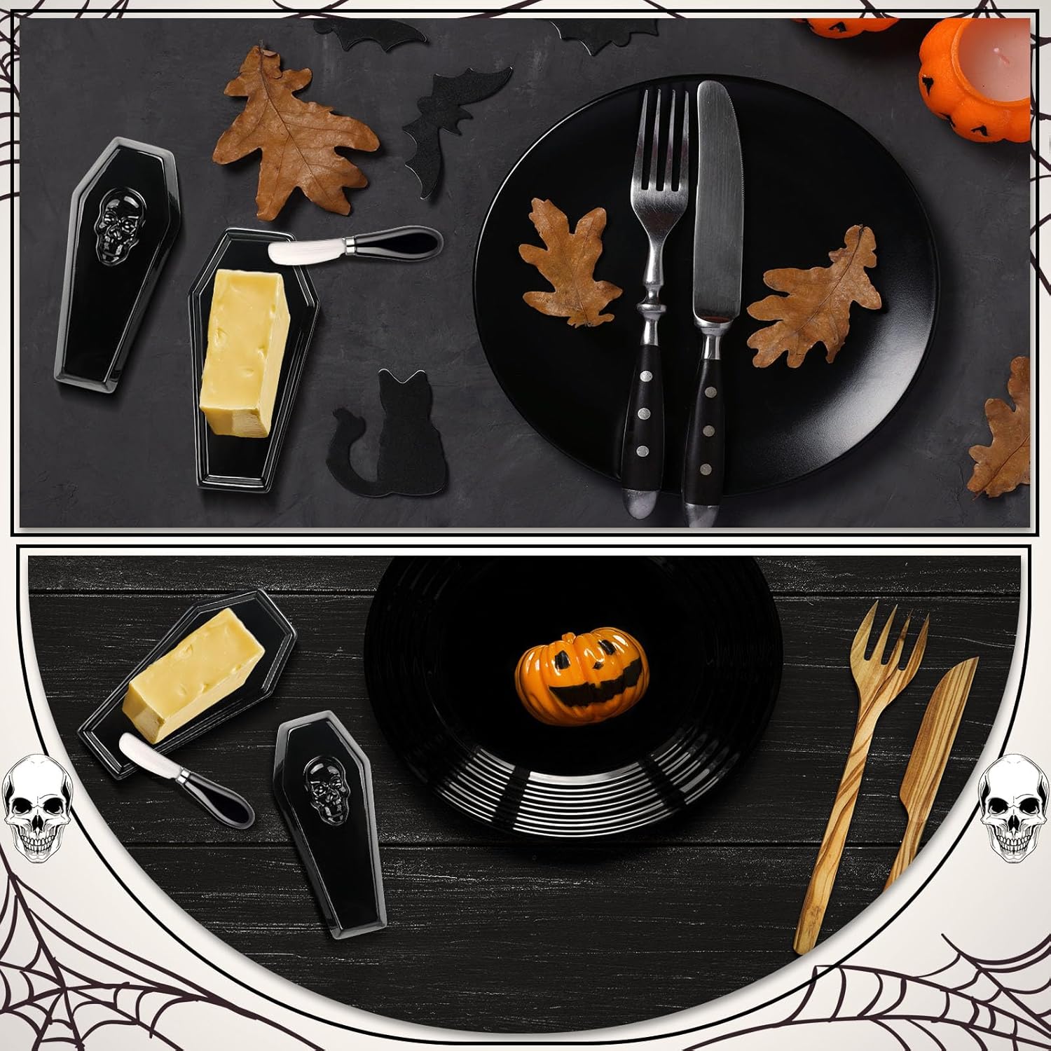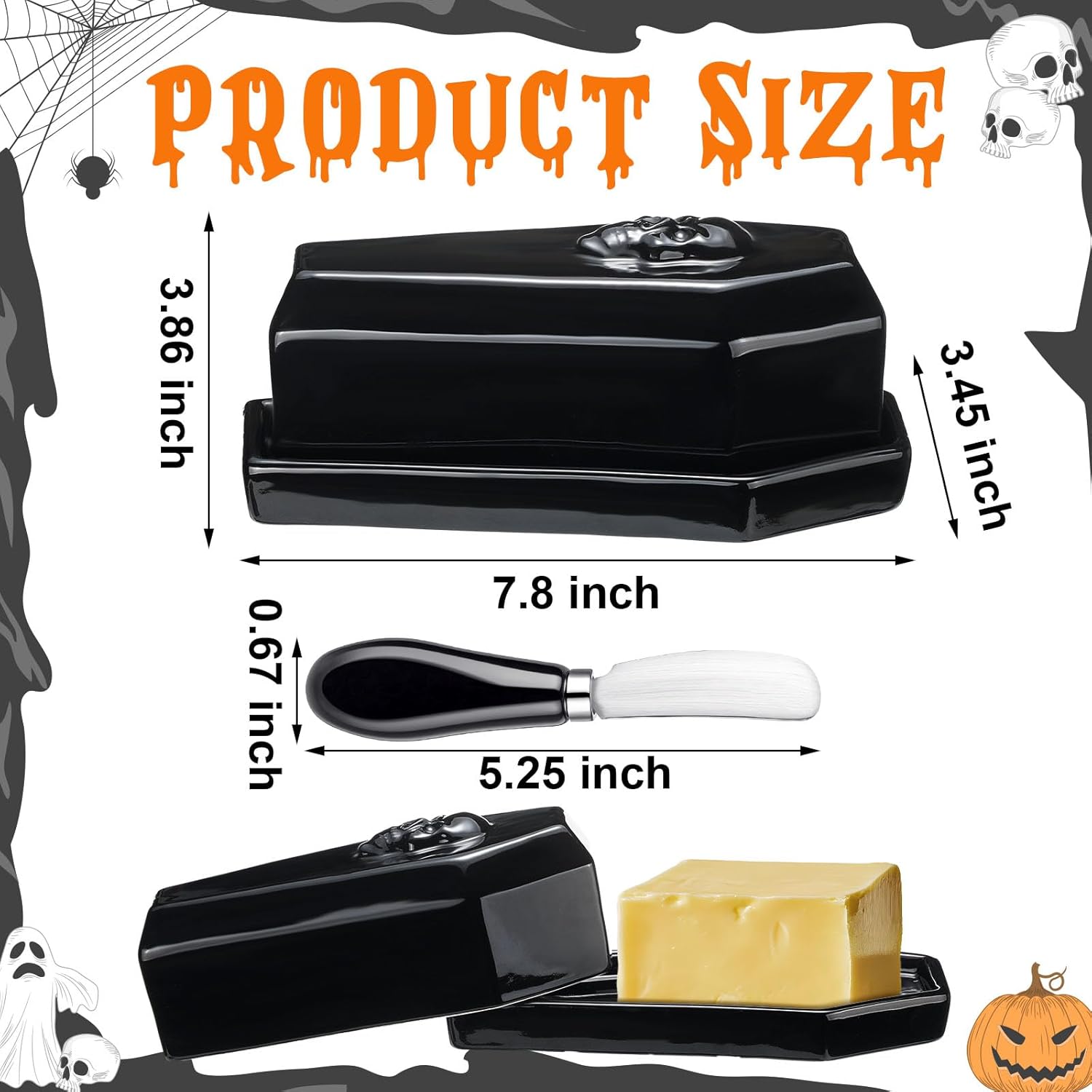 Set Contents: our set contains 1 coffin butter dish with lid and 1 black butter knife; The set is complete, exquisite and interesting; It is a wonderful Halloween gift set, I believe it will be your choice