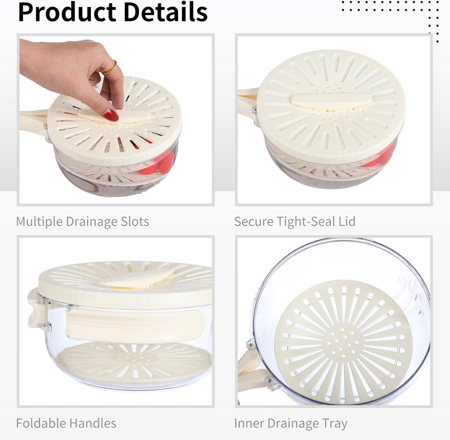 Durable, Safe & Perfect for On-The-Go: Made from BPA-free, food-grade plastic, this fruit draining basket is built to last. It’s odor-resistant, withstands low temperatures, and is easy to clean. The portable design with secure lid makes it the best choice for camping, picnics, beach trips, and lunch on the go