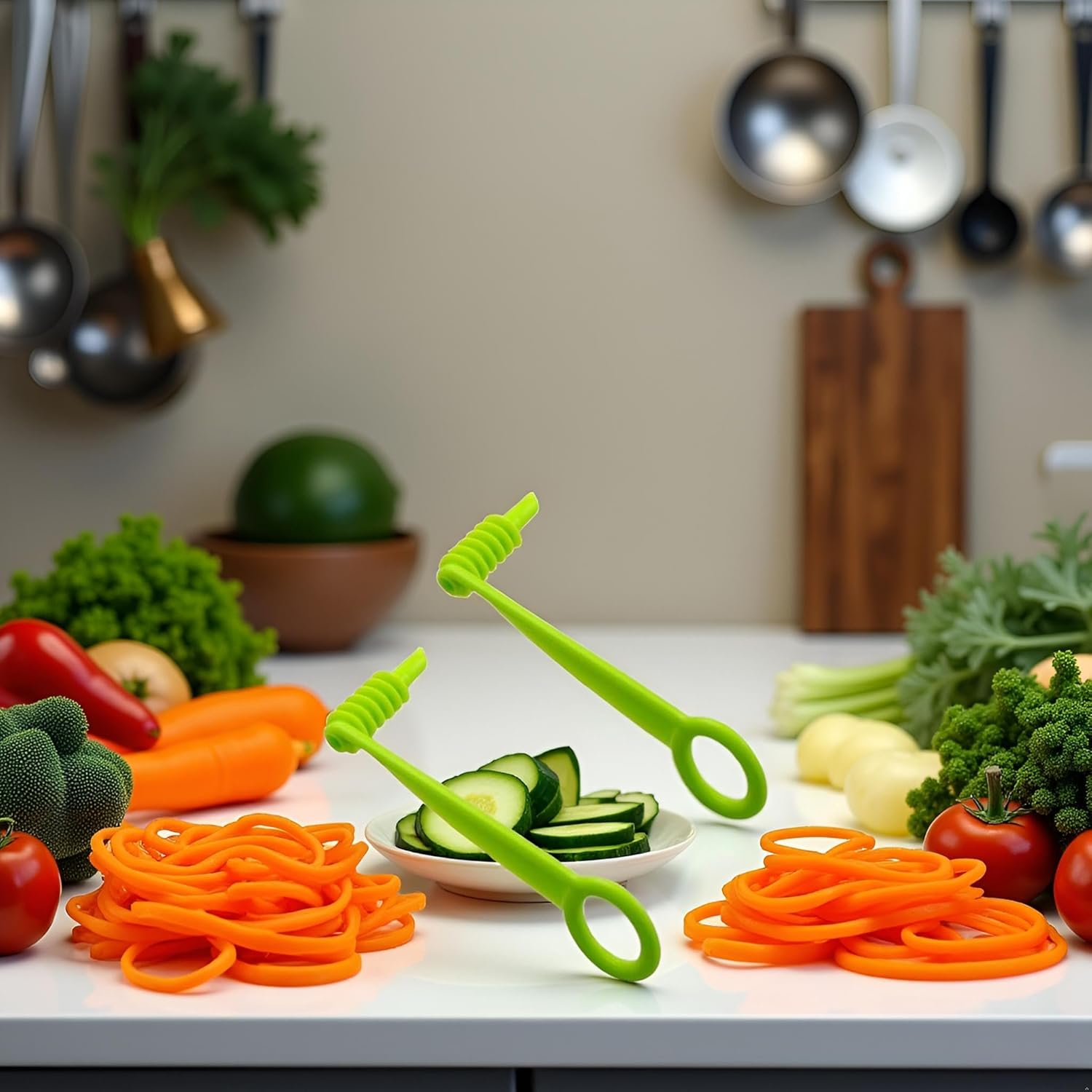 SET INCLUDES: Two identical green spiral vegetable slicers for convenience and backup, allowing you to keep one clean while using the other