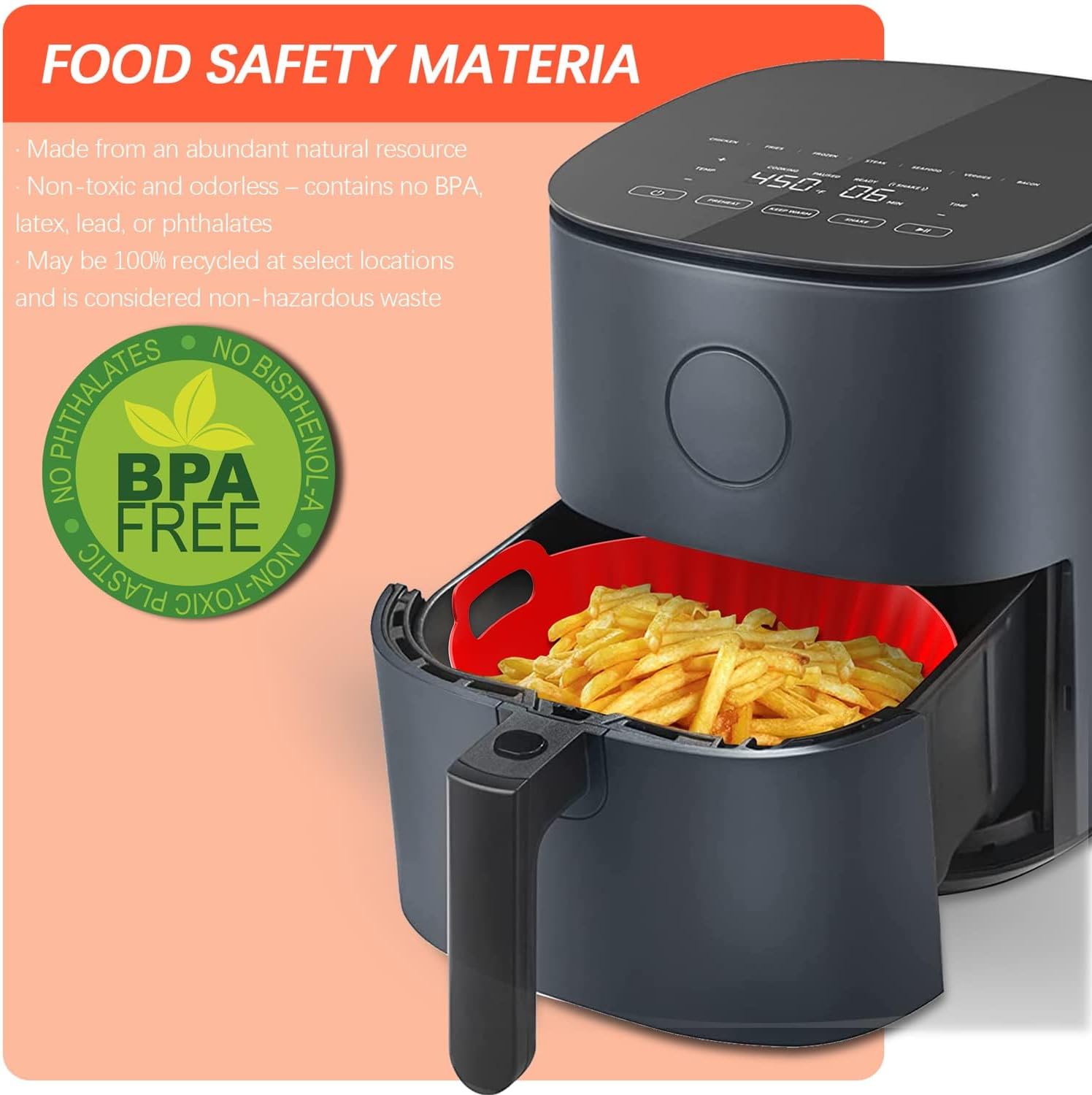 Wide Applications: The air fryer liners silicone is a great additional kitchen essential accessory, kitchen gadget. Not only suitable for air fryers, but also used for microwave, oven, baking, steamer etc. The perfect gifts for your family, friends and cooking lovers. The 2 handles make it safer to take air fryer tray out