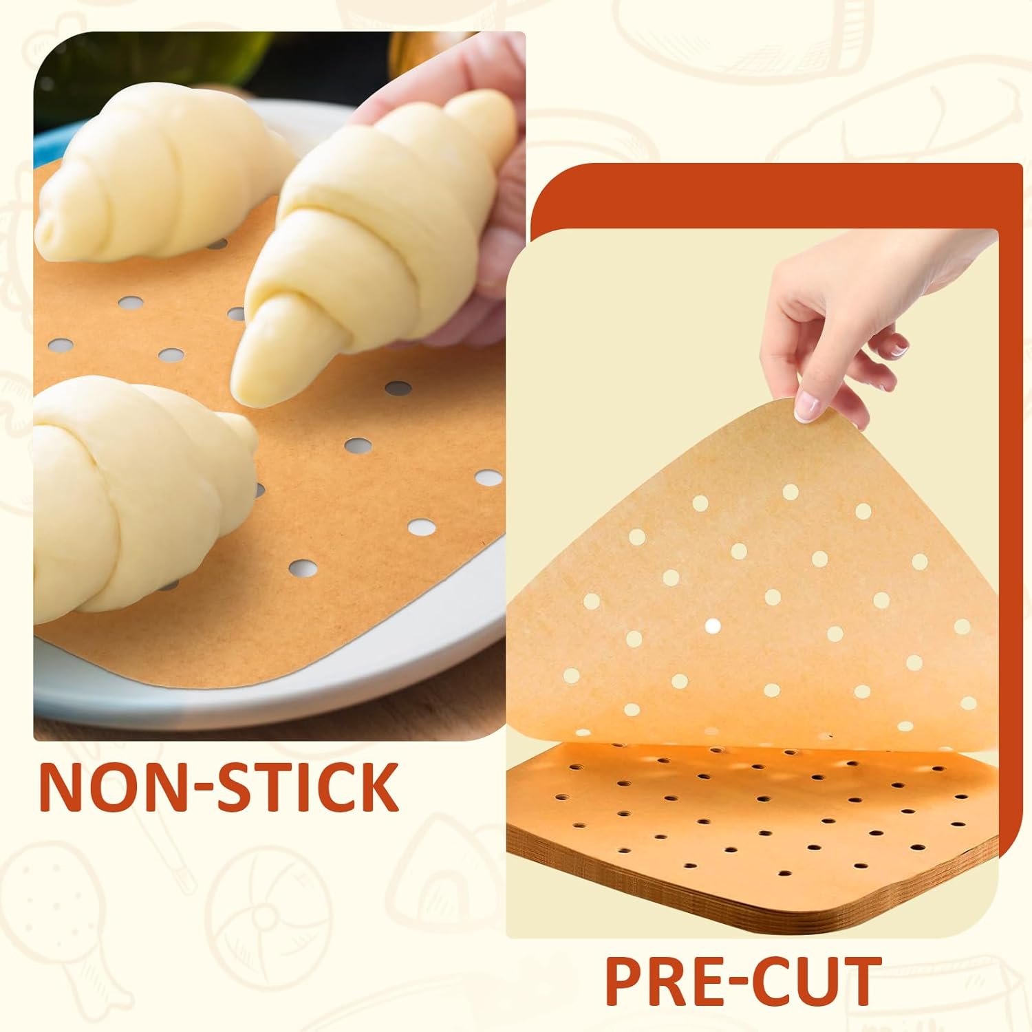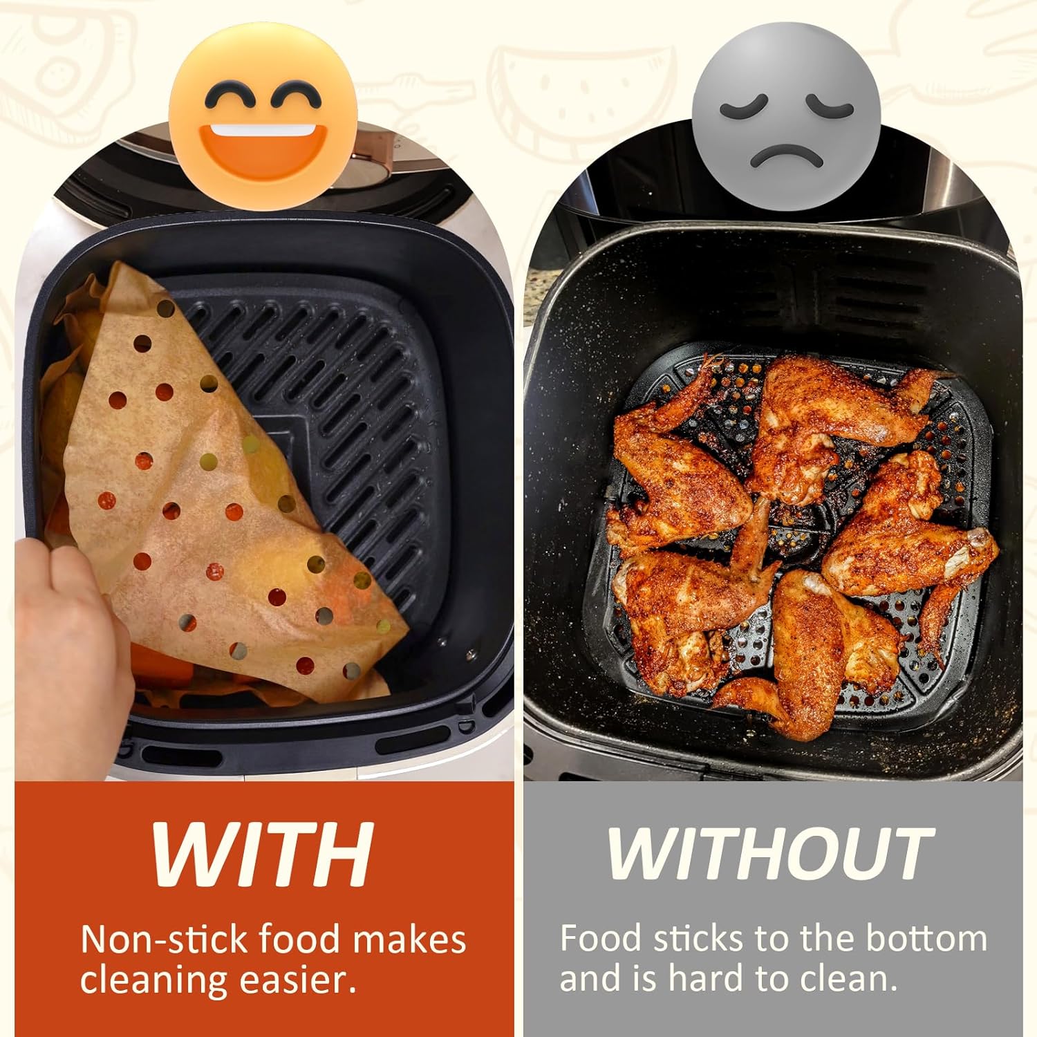 Practical Design: The perforated air fryer paper promotes optimal air circulation, ensures even food heated, ensures quality of baking, and provides you with an excellent delicious experience