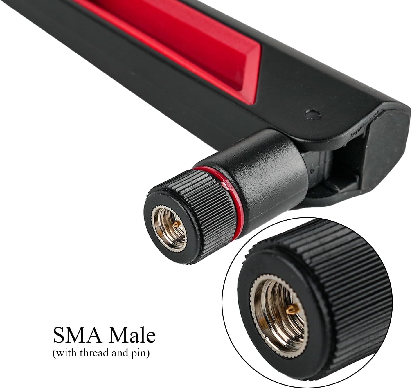 Gain 12dBi Frequency band 2400-2500MHZ/4900-5900MHz Standing Wave Ratio SWR ≦ 1.5 Impedance 50 ohm Radiation Omni-Directional Antenna Length 19.5cm Connector Type SMA male (Please ensure that your device is an SMA interface with hole) Color Black