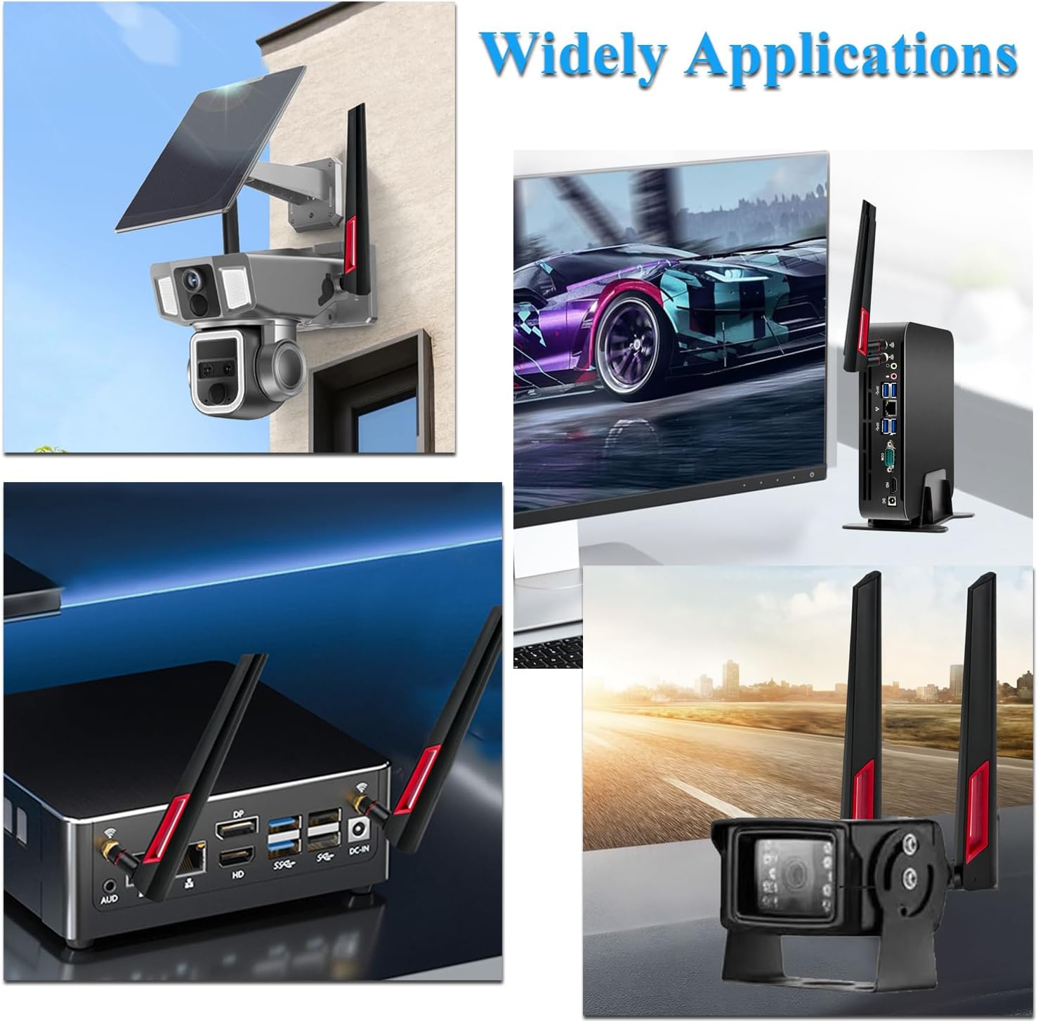 This 12 dBi WiFi antenna is suitable for WiFi IP Security Camera, Reverse Camera, Wireless Video Surveillance DVR Recorder, Backup Camera, network device, Industrial Router IoT Gateway Modem, Dual Frequency Devices and so on.