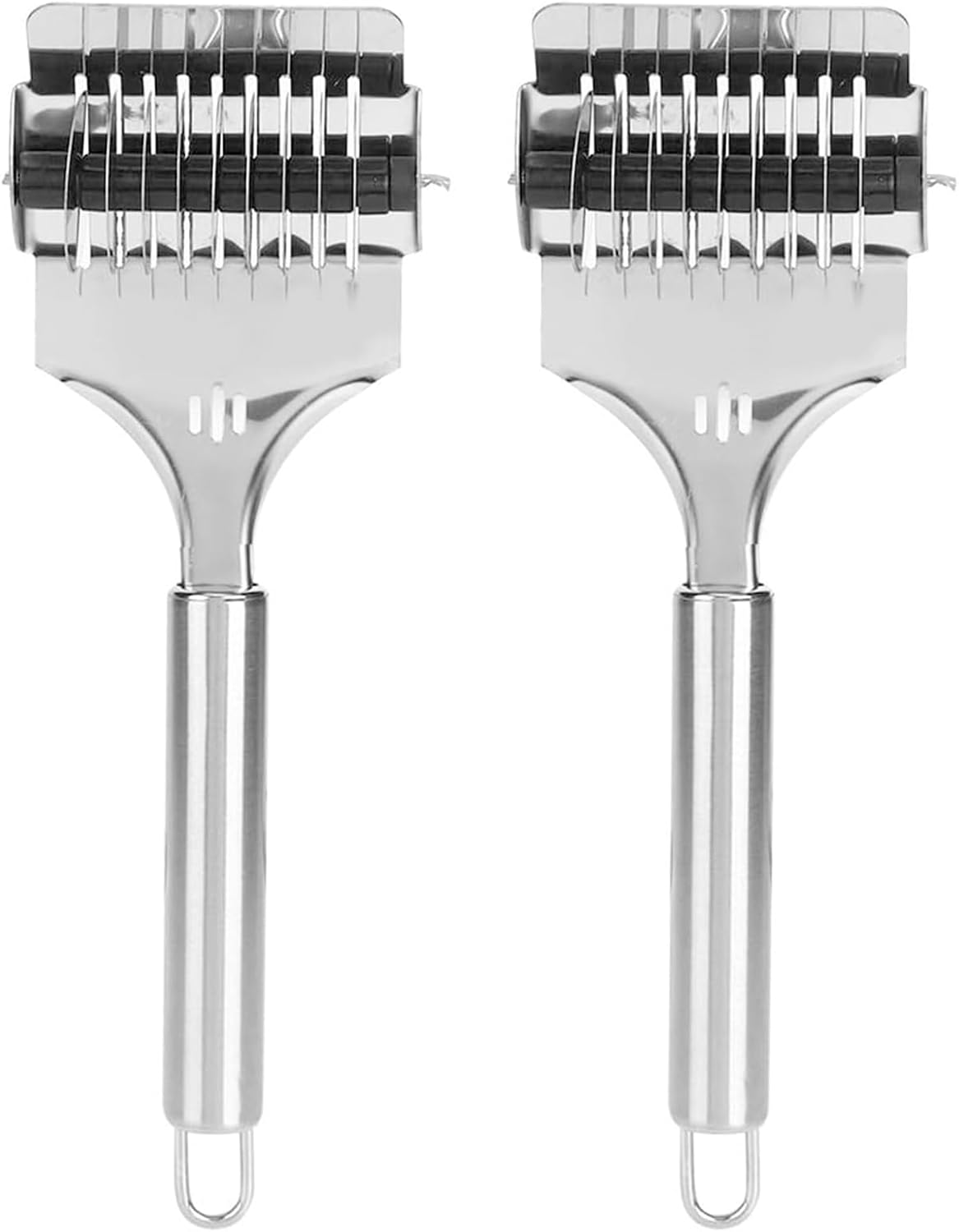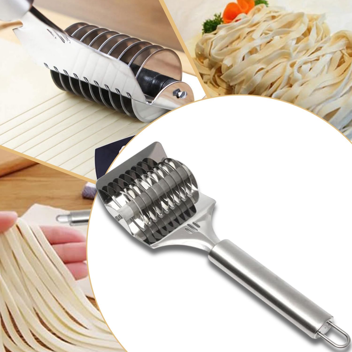 【Multi-functional Kitchen Tool】This professional noodle cutter for homemade noodles features stainless steel blades that create 8 uniform strands instantly. Perfect for crafting spaghetti/fettuccine with your manual pasta maker, it doubles as a precision pasta cutter wheel for slicing herbs and vegetables.