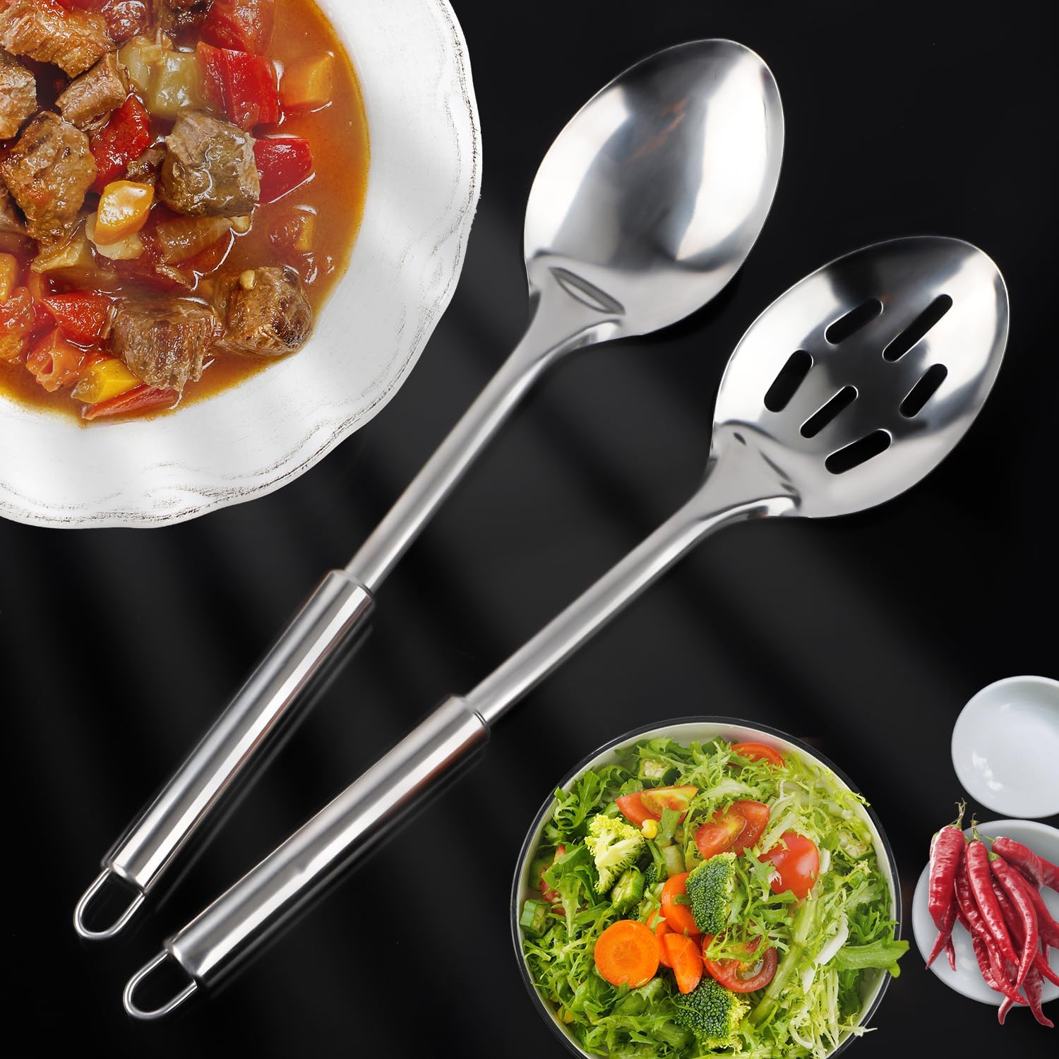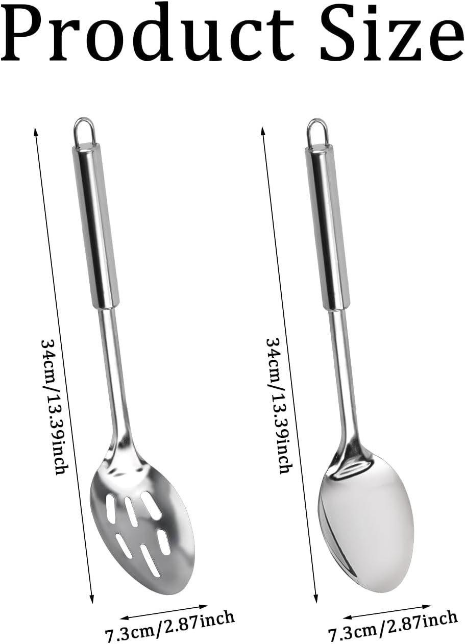 Package Content: You will receive 2 pieces of stainless steel cooking spoons, including 1 solid spoon and 1 slotted spoon, offering versatility for all your cooking and serving tasks.