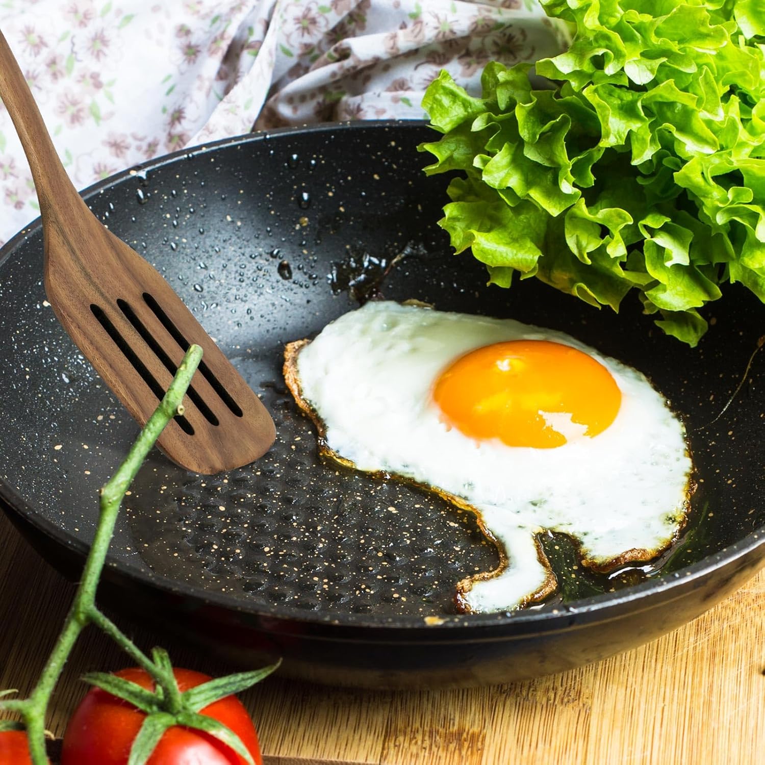 Package Content: You will receive 2 pieces of wooden spatulas for cooking (solid one and slotted one), which perfectly fit pan surfaces without scratching. You can use them with confidence.