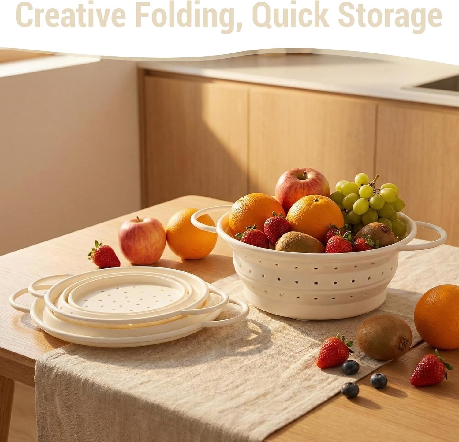 3 Pack Collapsible Colander with Strainer Bowl Set, 11 & 13 In BPA-Free Silicone Colanders for Kitchen, Heat-Resistant Strainer Dishwasher Safe Baskets for Vegetable Fruits(White)