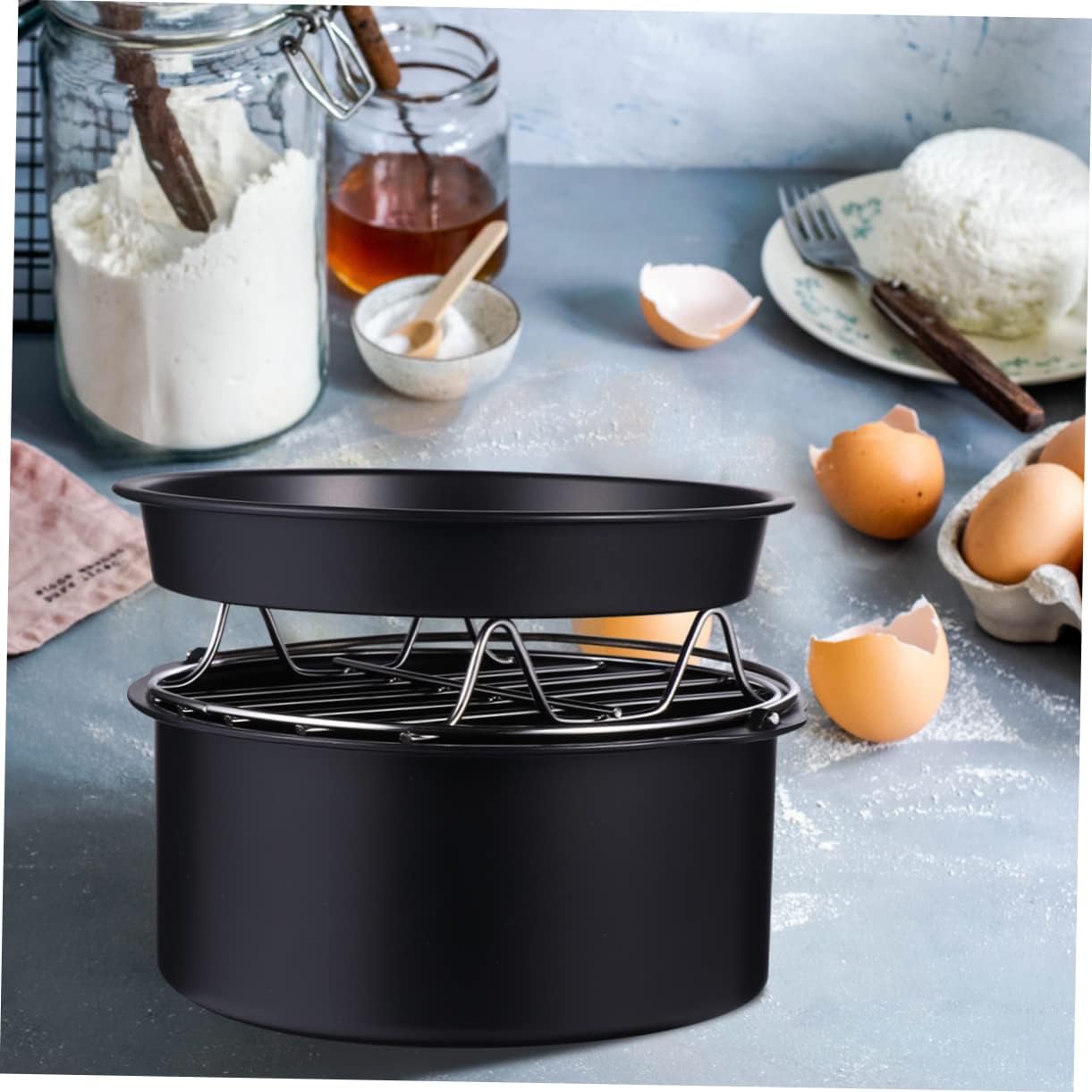 Air Fryer Accessories Made of for and use.Household Air Fryer Accessories Comes with pizza pan, cake barrel and stainless steel steaming rack.Pizza Pan This is a set of 3pcs Air Fryer Accessories, which is specially designed for food cooking.Baking Tools Easy to use and clean up