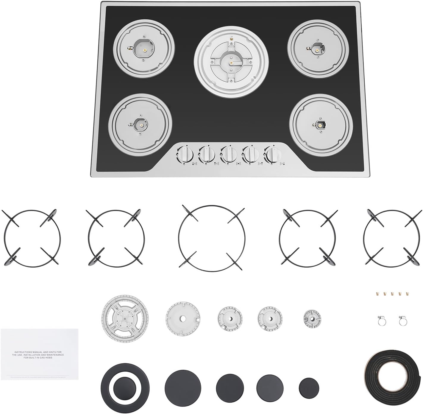 Efficient Cooking: The spacious cooktop (30.5×20.1×2.6in) has five independent burners, allowing multiple people to cook various dishes simultaneously. It greatly improves cooking efficiency, especially suitable for large families.