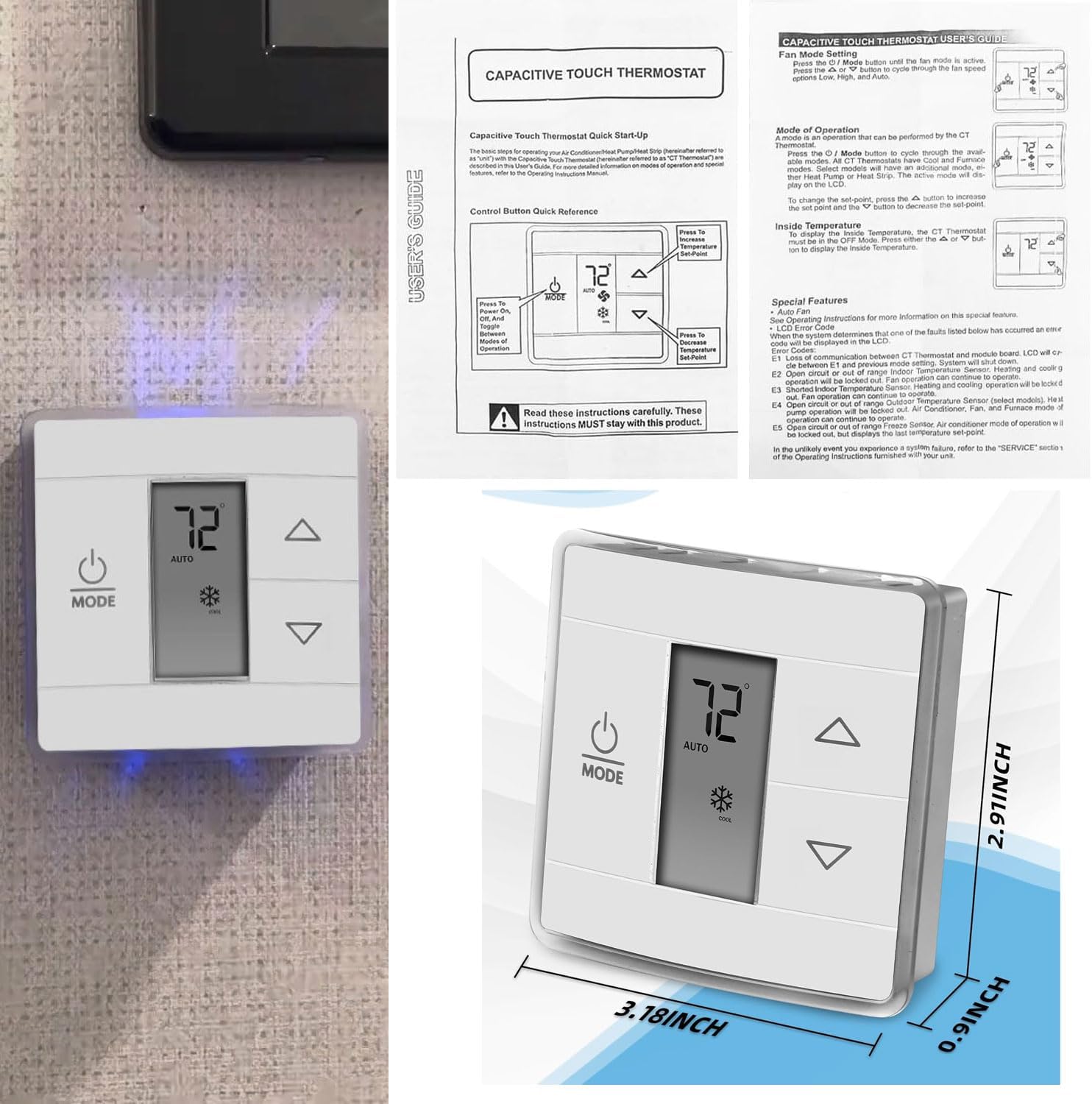 The RV Single Zone Wall Thermostat Relay Box using the advanced technology of capacities sensors , precisely regulate your AC or heating system to maintain a comfortable temperature range while avoiding unnecessary energy waste. Gently tapping on the input areas of the control allows you to access all the climate control features, and when you touch any input the display lights up so you can see the temperature, mode, and points with ease.