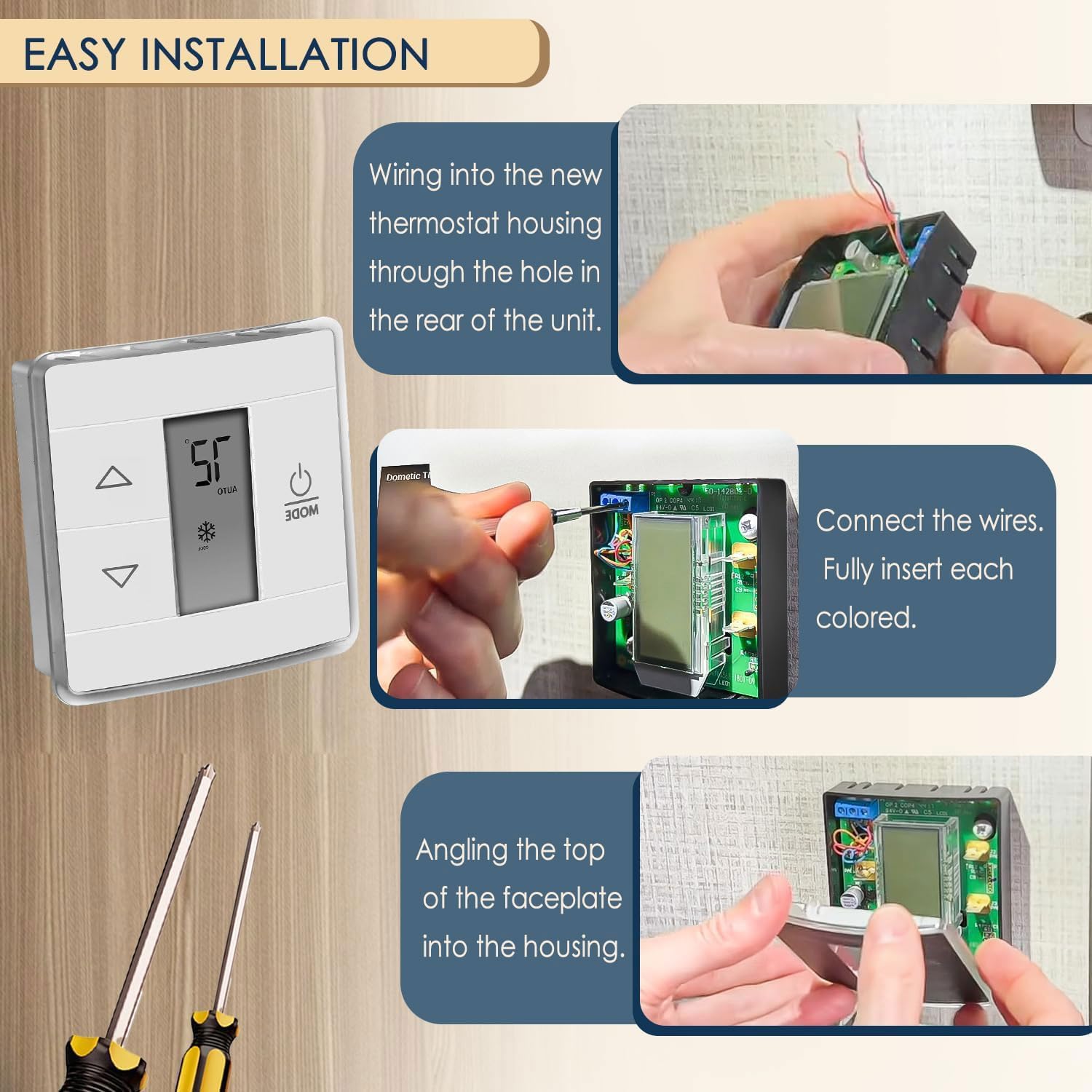 This RV Wall Thermostat can be installed the wall of your RV Trailer or Camper, single zone controls cool/furnace. This AC Thermostat CANNOT control a furnace without for Dometic A/C in the system. Compatible with all single-zone cooling, heat pump, and heat strip models (excluding Atwood AirCommand)