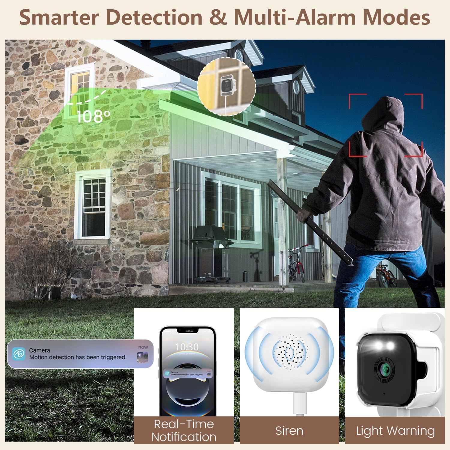 【Smart Person Detection & Real-Time Alerts】AI-powered algorithms accurately distinguish between people, pets, and environmental movement, sending precise alerts to your phone. Receive instant notifications and remotely trigger a built-in siren to deter intruders—ensuring 24/7 protection for your home and loved ones.