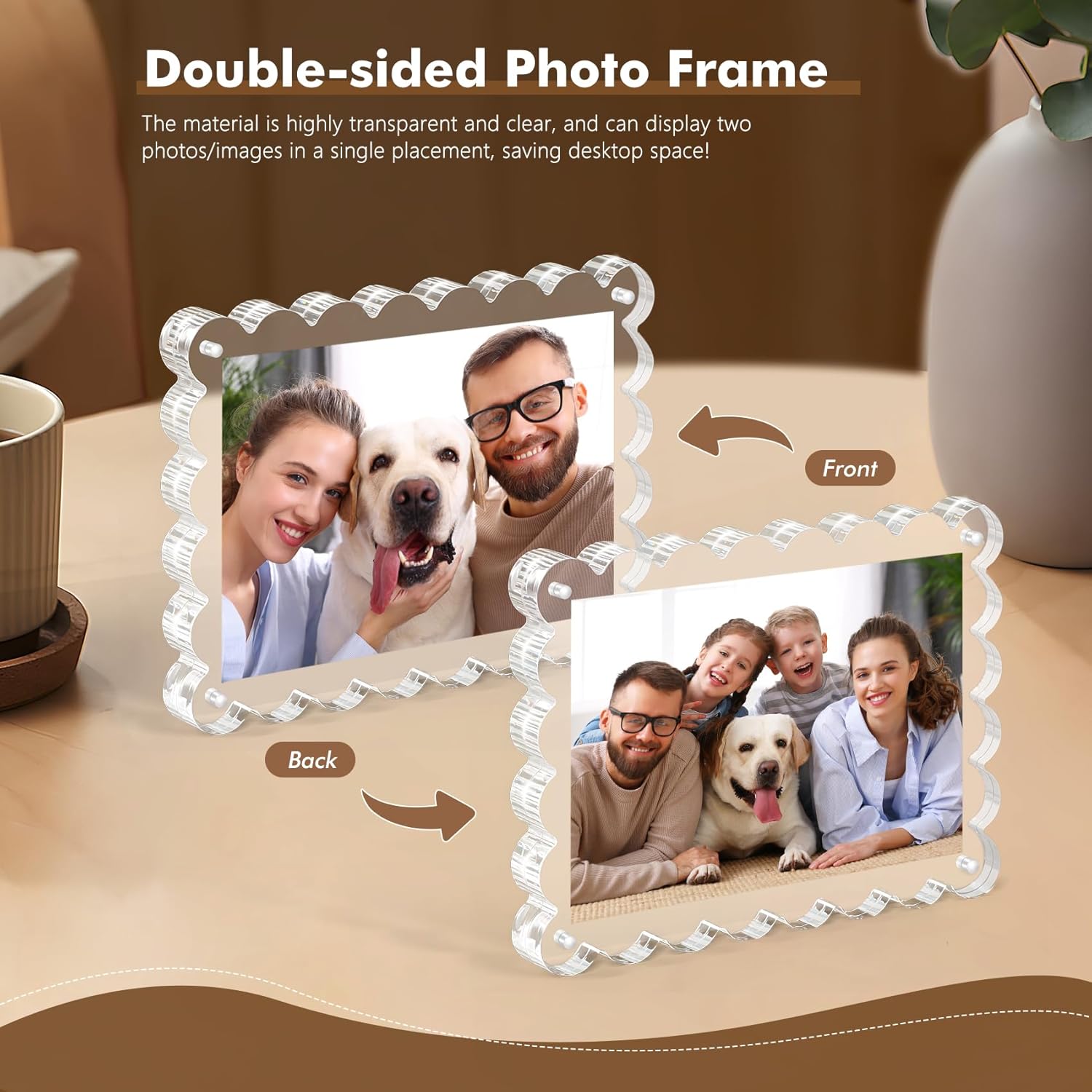 Multi-Functional Modern Heirloom Perfect for home offices, galleries, or as wedding/anniversary gifts, these scalloped acrylic frames blend minimalist aesthetics with functional design. The freestanding magnetic picture frame works equally well for rotating seasonal décor or creating curated photo walls.
