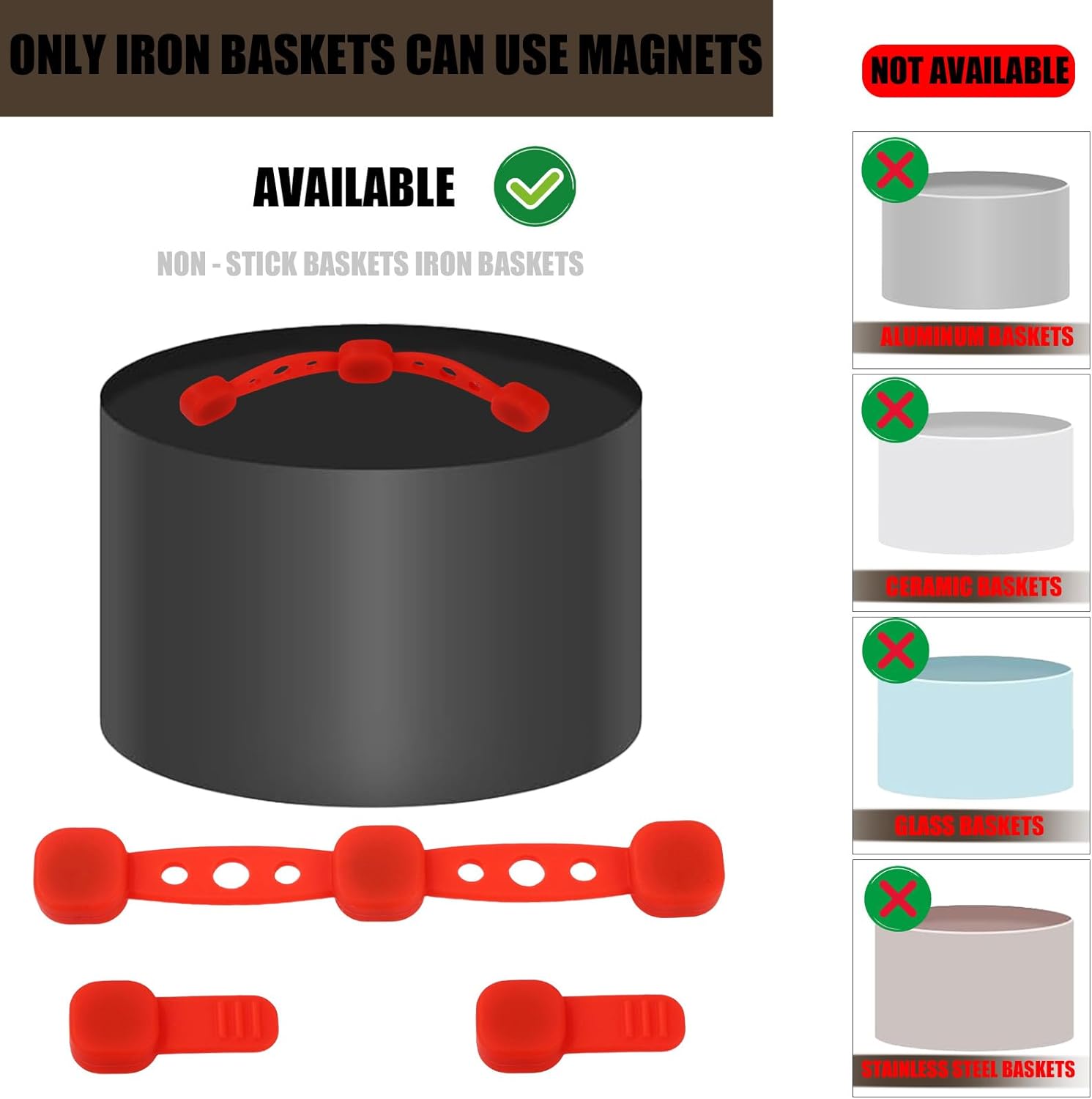 Secure Parchment Paper in Place: These magnets hold parchment paper firmly inside the air fryer basket, preventing it from lifting or shifting during cooking. You don’t need to worry about the baking paper covering your food or catching fire.