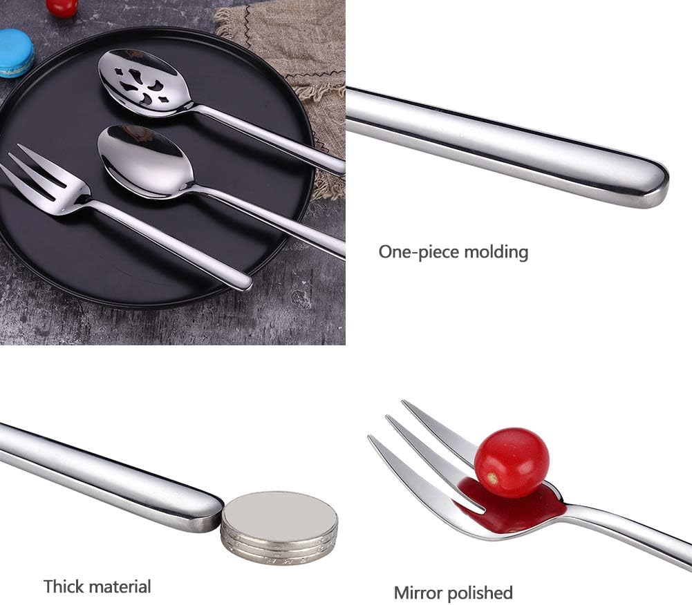 CLASSIC DESIGN Every details of our stainless steel forks&spoons has been carefully polished delicately designed and produced add more elegance and class to your table. They could be used to eat all kinds of food, penetrate food effortlessly. Not only suitable for yourself but also your children. It has a classic design allows for mix and match with your existing flatware to elevate everyday meals into a fine dining experience.