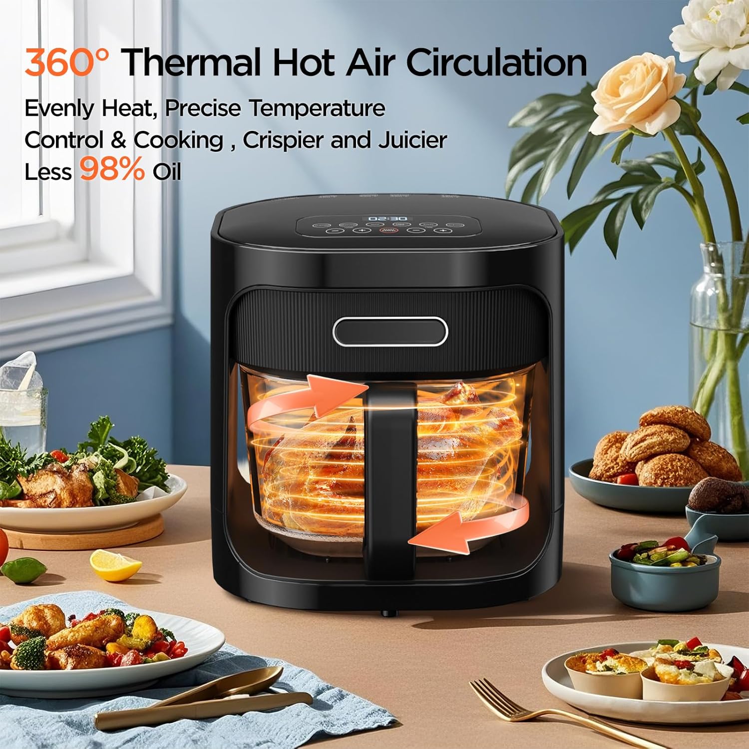 【🧼 Hassle-Free Cleaning: Dishwasher-Safe】The smooth glass body can be easily wiped with a damp cloth, and the detachable fryer is dishwasher-safe, reducing the need for manual cleaning and keeping your kitchen tidy.