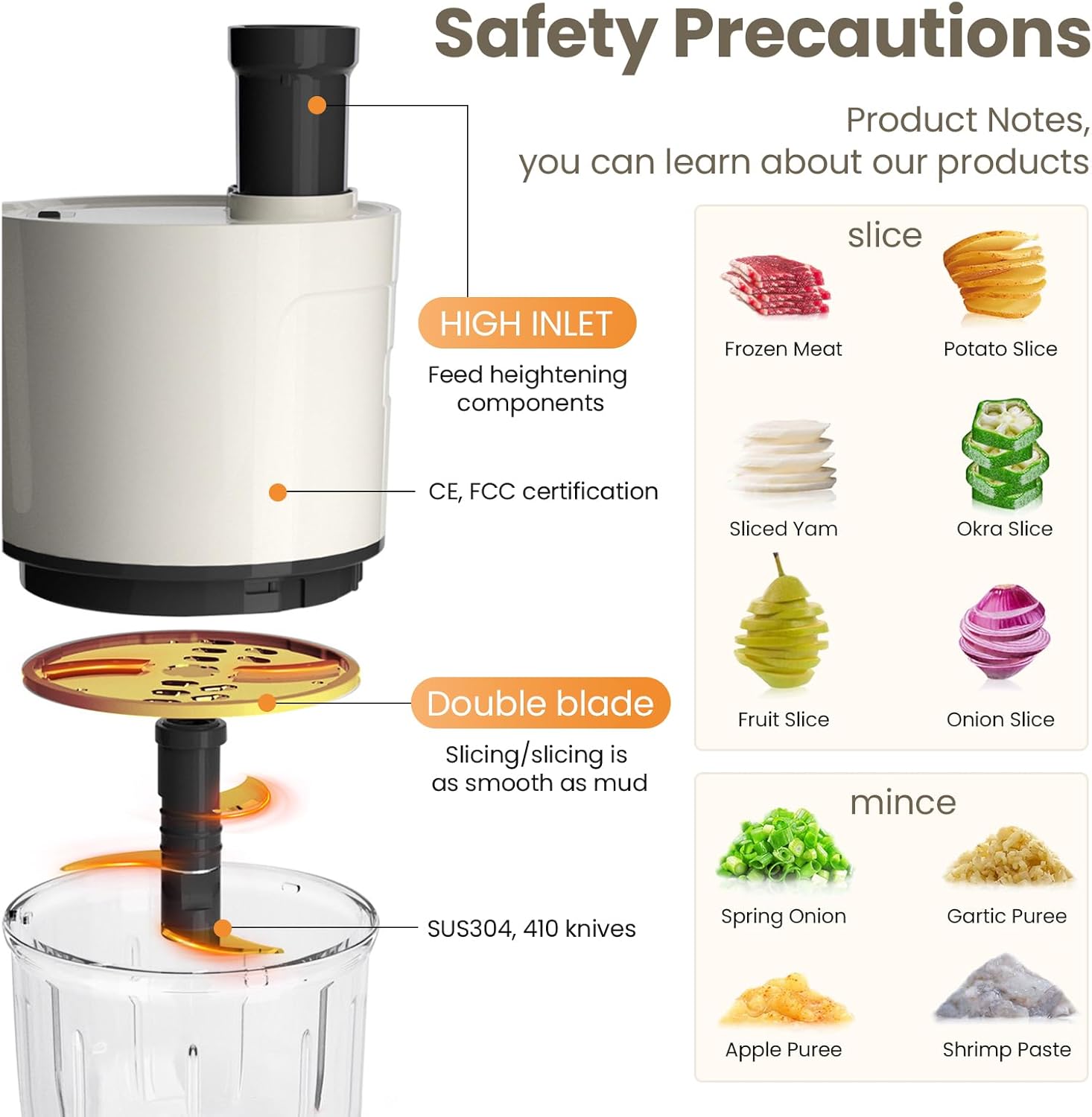 Tips for Best Use:Chop hard vegetables (e.g., carrots) into small pieces to avoid them getting stuck.Let the blade rest for 15 seconds after 40 seconds of continuous use to prevent overheating.Fully charge the battery before first use, and recharge it every two weeks if not in use.