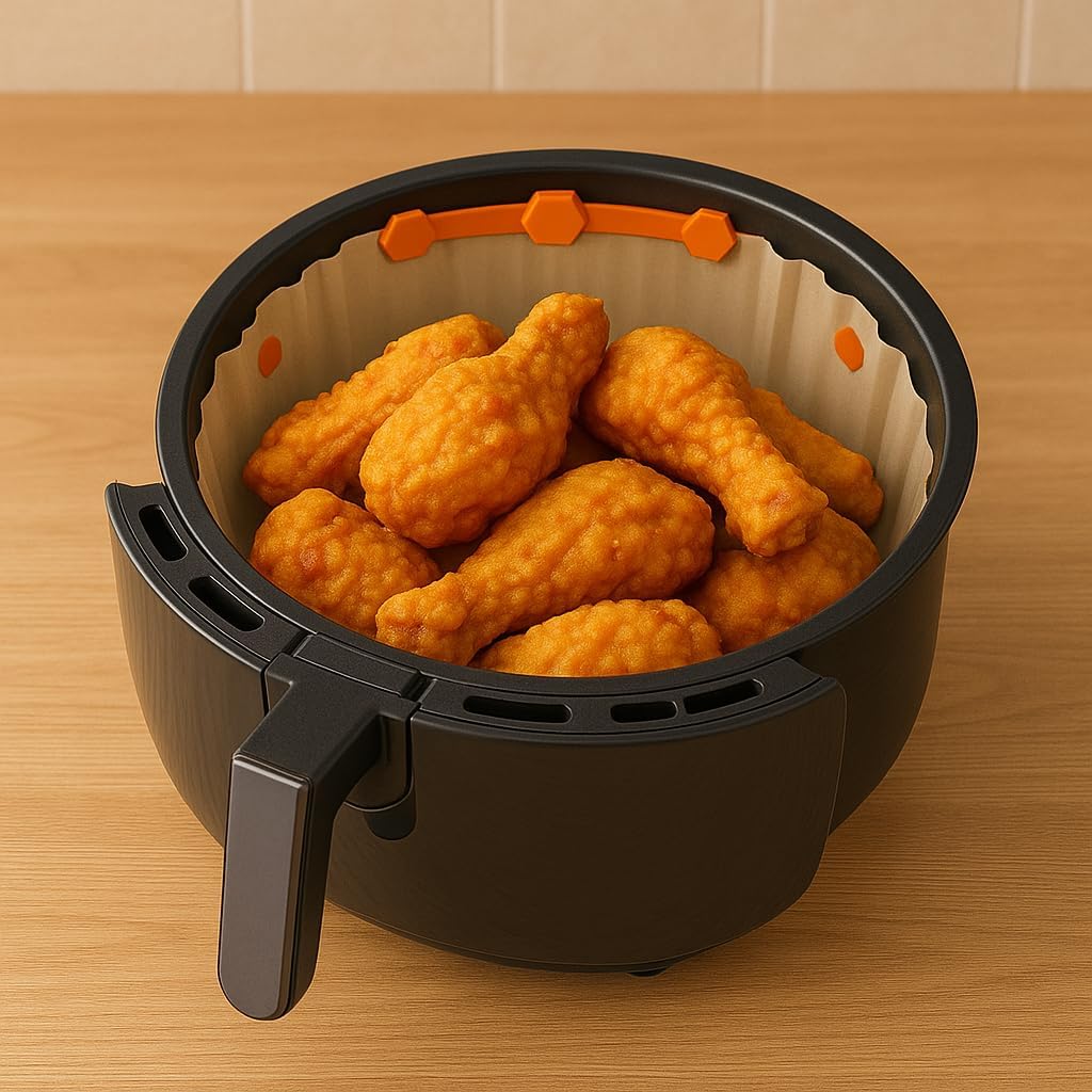 Elevate your air fryer experience with our premium Air Fryer Parchment Liner Holder! Designed with cutting-edge Secure Fixation Technology, this innovative product uses ultra-strong neodymium magnets embedded in food-grade silicone clips to lock parchment liners firmly in place. Say goodbye to shifting papers, uneven cooking, and potential fire hazards caused by liners touching heating elements.