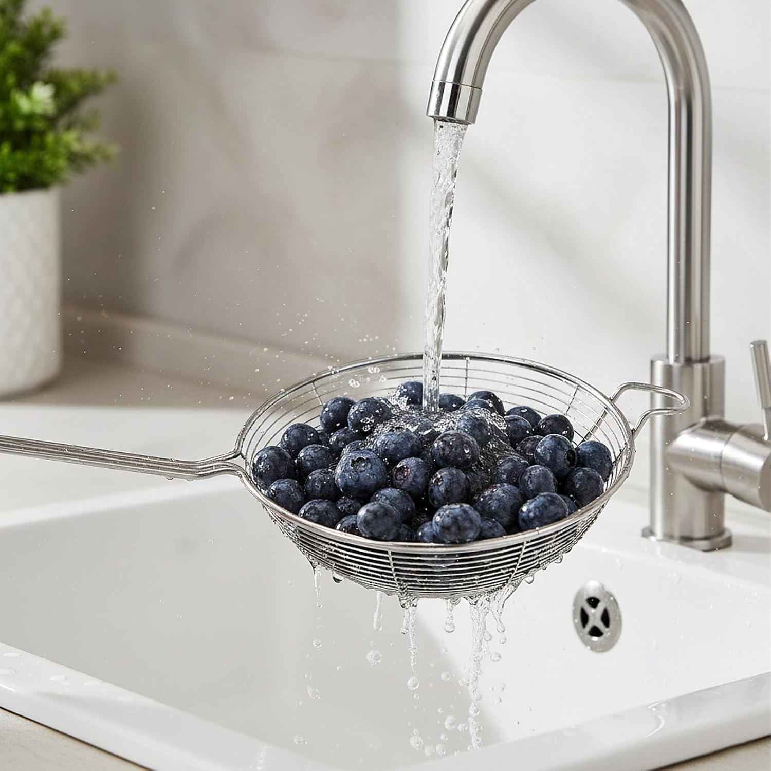 Ergonomic and Safe Design: Features long handles that protect hands from hot oil and steam during cooking, while the comfortable grip ensures secure handling. The fine mesh and slotted designs provide optimal filtration without clogging, and the balanced construction allows for both handheld use and stable placement on containers during straining tasks.