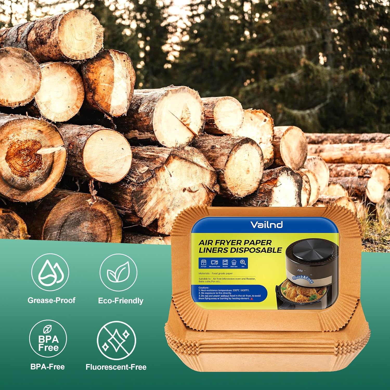 Healthy Materials: Rectangle air fryer paper liners are made of unbleached parchment with double-sided silicone oil coating, no fluorescent, BPA-free. These baking paper are no affection to the taste of food and the hot air circulation of air frying