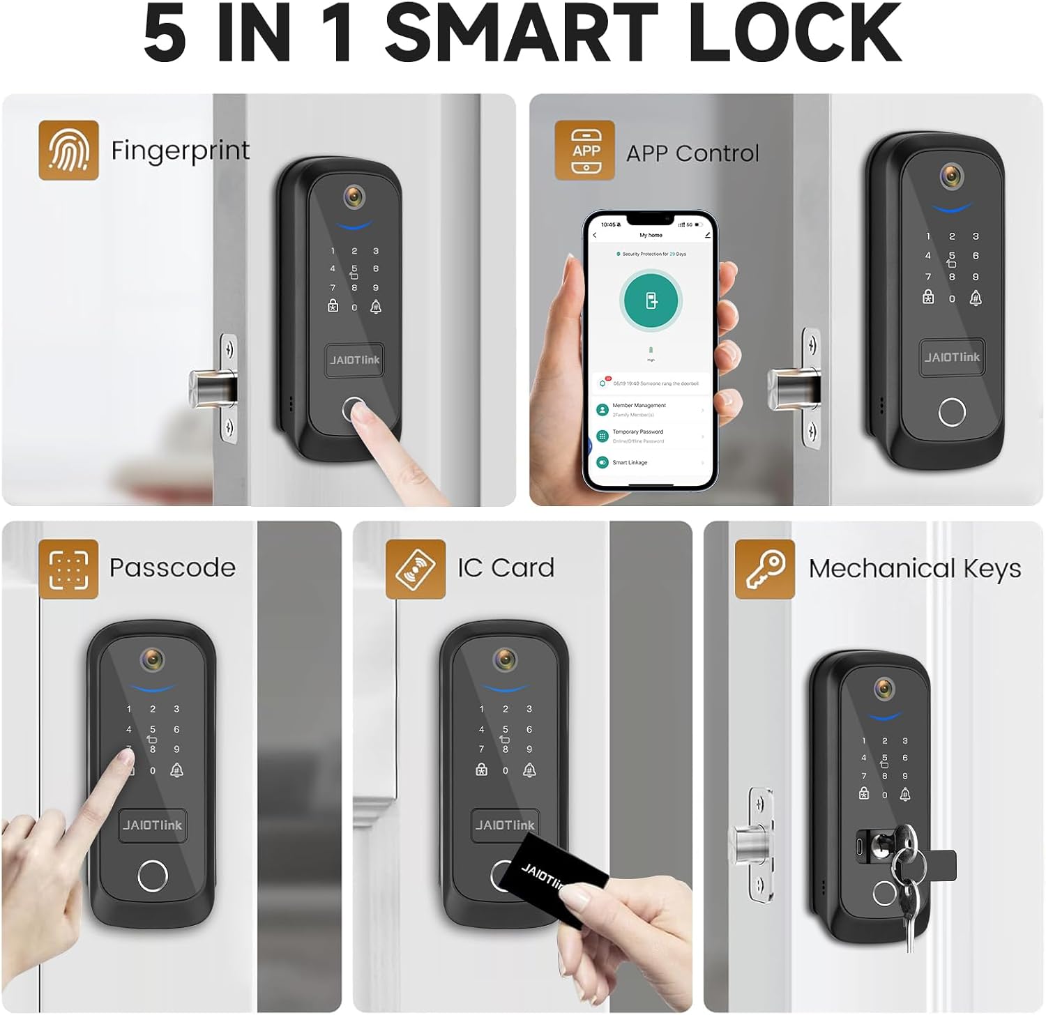 5-in-1 Keyless Smart Lock: Unlock your door your way with this advanced smart door lock. Designed for modern homes, this keyless entry door lock offers five secure methods: fingerprint recognition, passcode entry, IC card, mechanical key, and remote app control. Perfect for families, Airbnb rentals, and guests seeking both convenience and high security.