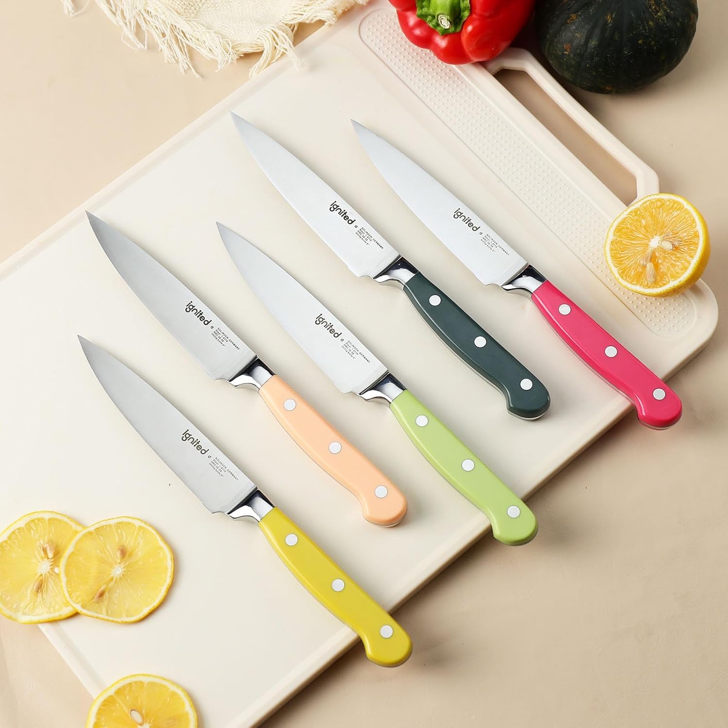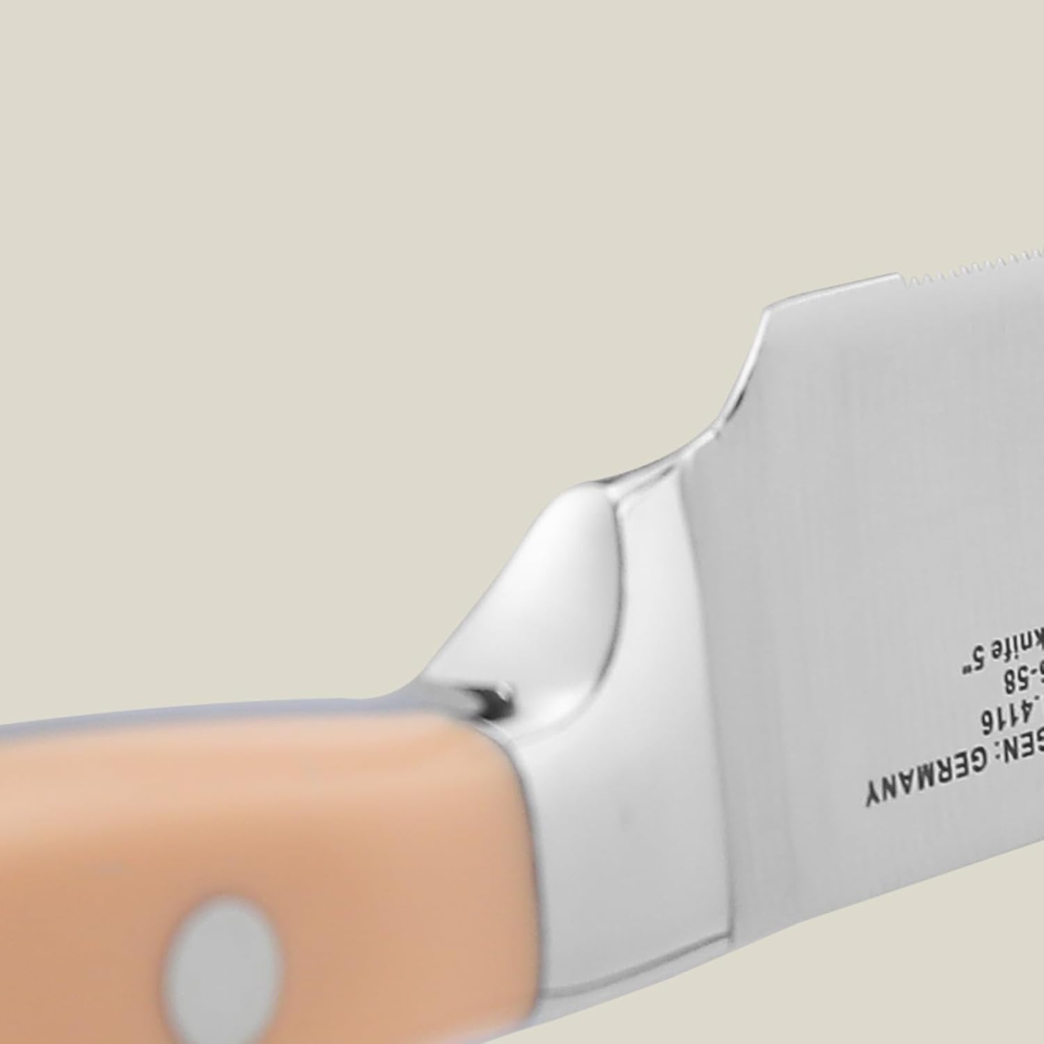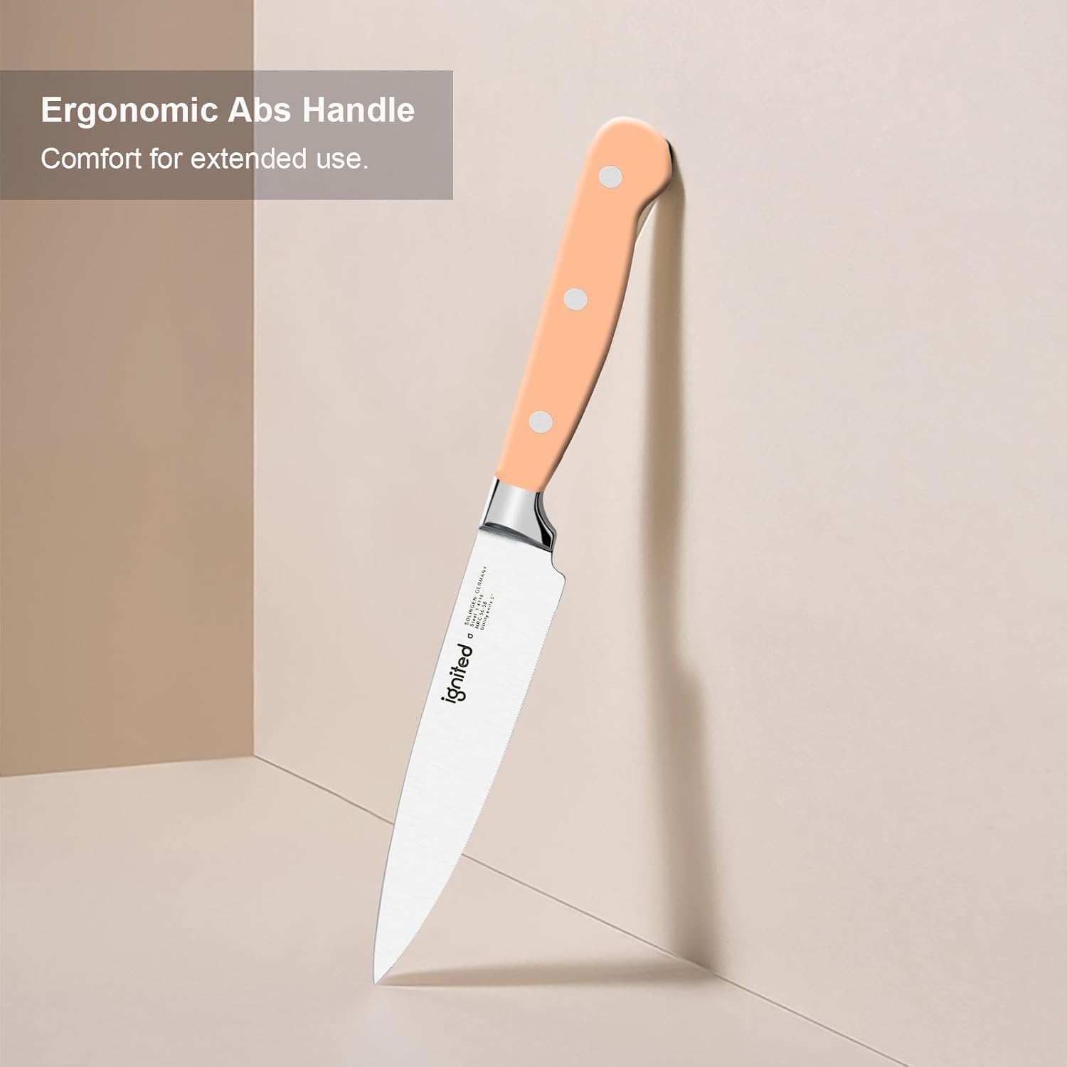 High Quality German Steel: Crafted from German 1.4116 stainless steel, this 5 inch serrated paring knife ensures long-lasting sharpness and durability, making it an essential addition to your kitchen knife collection