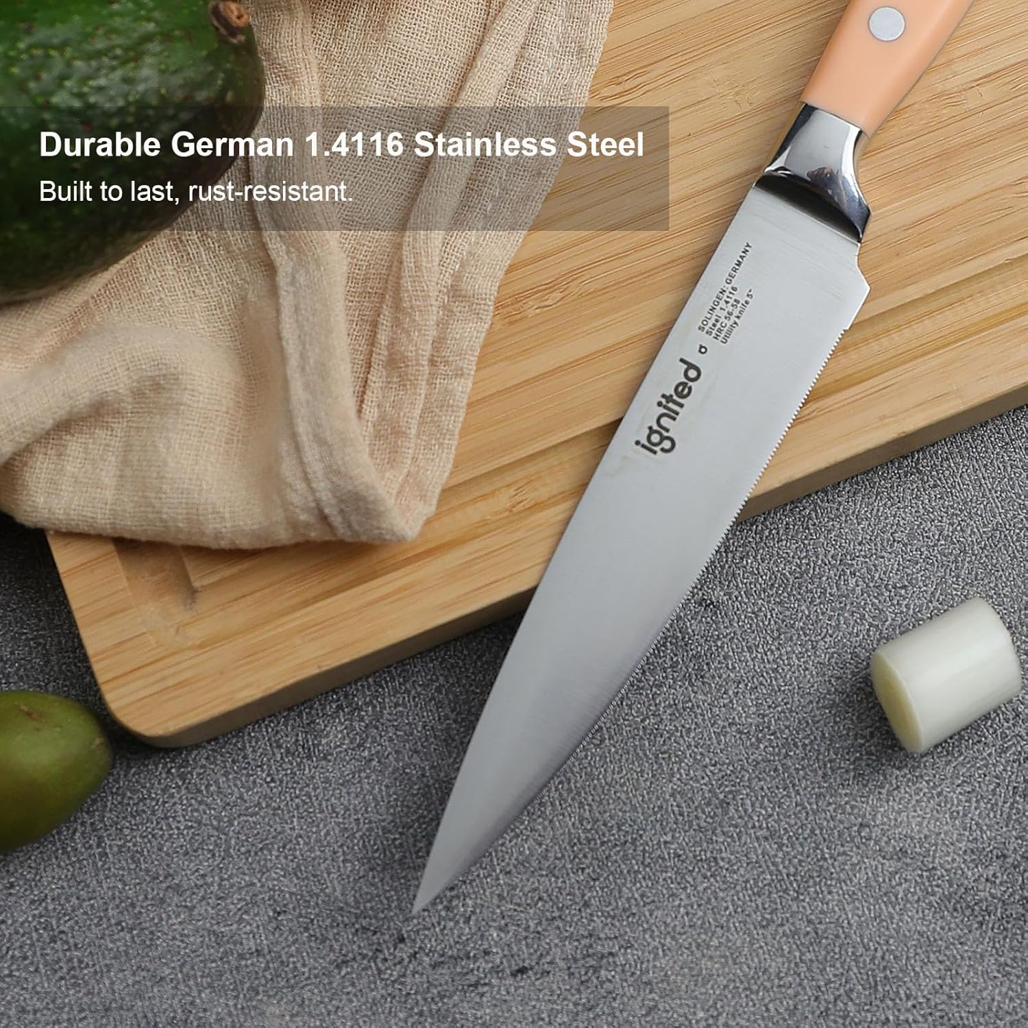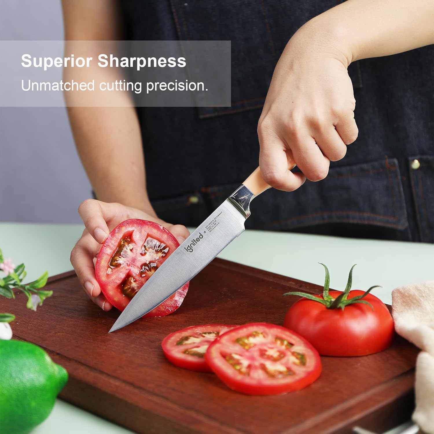 We believe a great knife should do more than cut—it should elevate the look and feel of your kitchen. Every Ignited knife blends precision with elegant design, turning everyday cooking into a beautiful ritual.