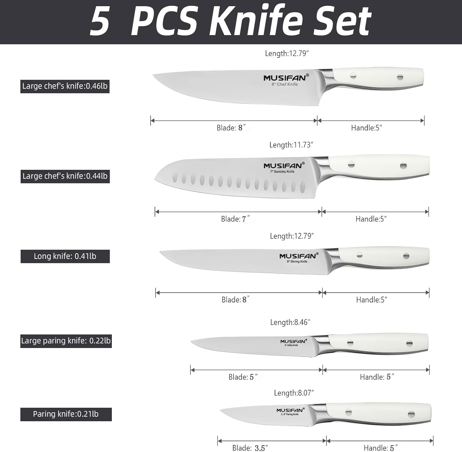 Durable :At the heart of our set is a high-quality chef knife that is perfect for everyday cooking. This knife is versatile enough to tackle meats, vegetables, and more, making it a indispensable tool in the kitchen.