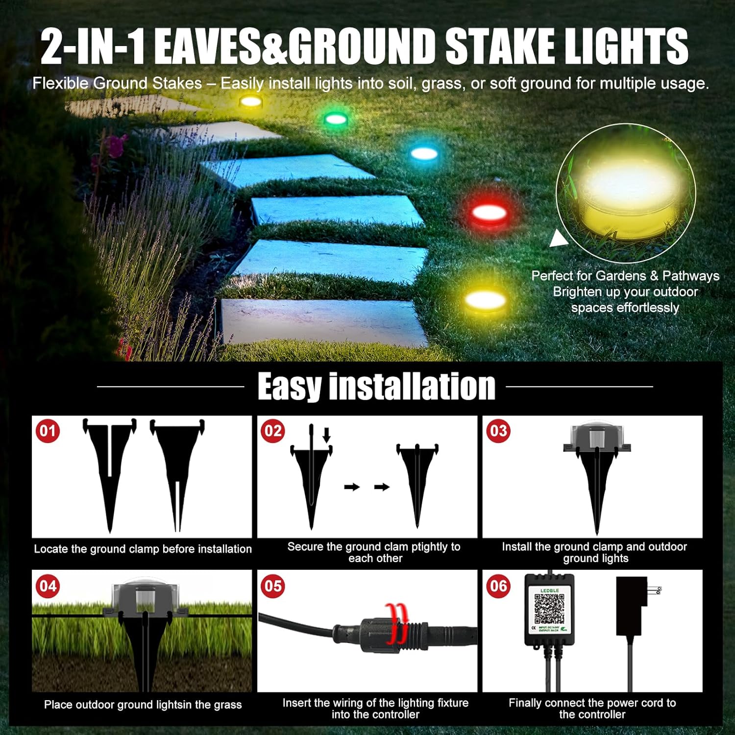 2-in-1 Eaves & Ground Stakes LED String Lights