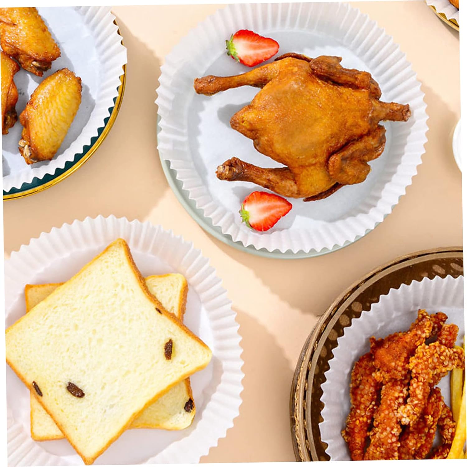 – Size: 20.00X20.00X4.50cm/ 7.86X7.86X1.77inch air fryer parchment liners.