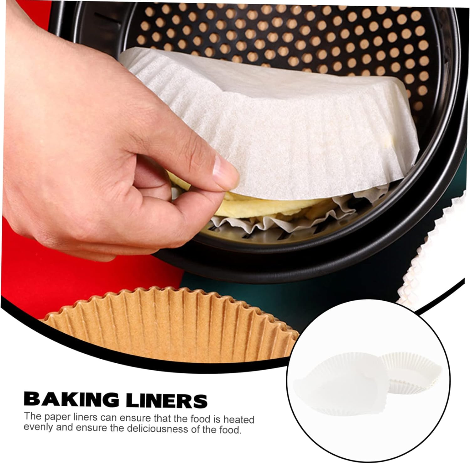 Muffin tin liners:the paper liner can that your baking food accepts evenly heated and the food is delicious,air frier cookers liners