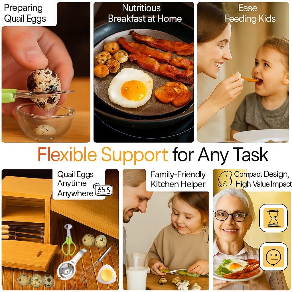 Compact, Easy-to-Clean Egg Peeler Machine: This quail egg peeler machine and shell opener cutter is small, easy to store, and simple to clean. Its compact size fits perfectly in kitchen drawers, making it a handy quail accessory. The included egg piercer allows you to effortlessly prepare eggs without the mess, making it a great gift for anyone who enjoys experimenting with new kitchen gadgets using quail eggs and pigeon eggs.