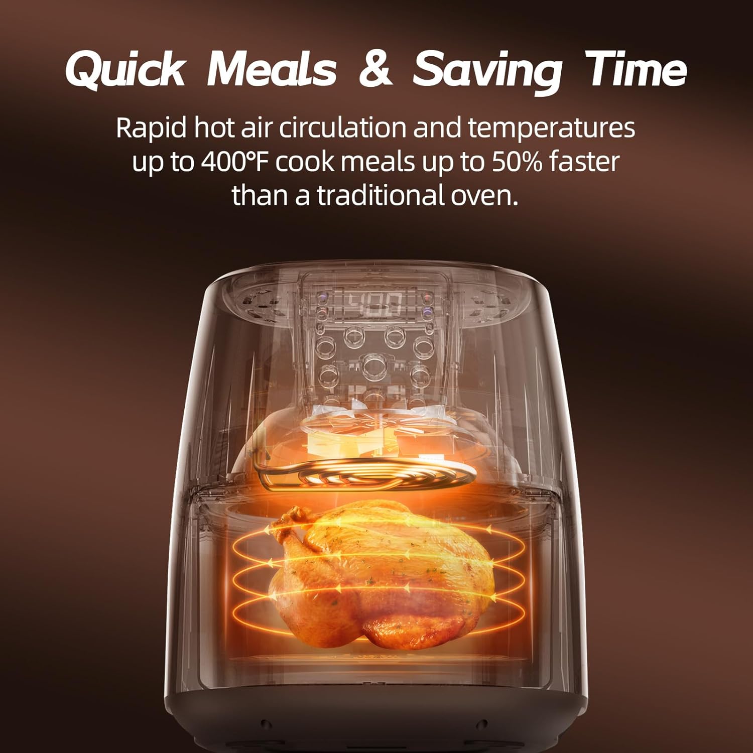 [Healthier Frying Technology] ✓ 1300W rapid air circulation reduces oil usage by 80% vs deep frying ✓ 50°F-400°F precision control (±5°F) for optimal cooking results