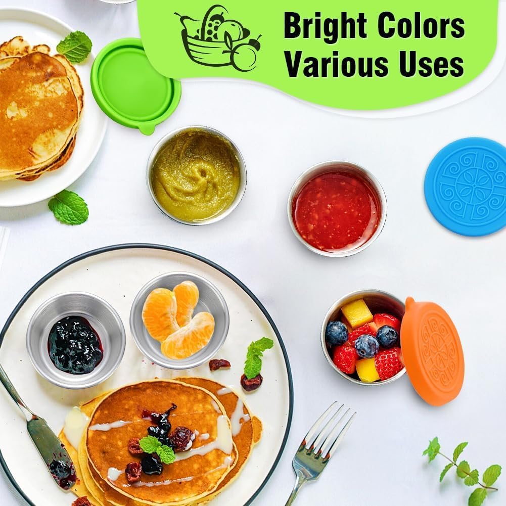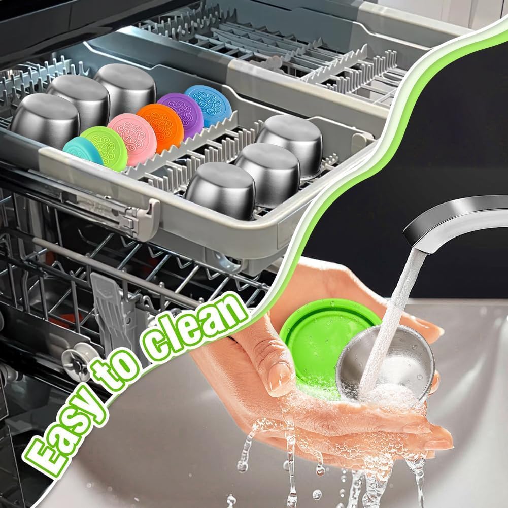 【Effortless Cleaning & Health Safety】 Dishwasher-safe construction (both silicone lids and steel cups) removes stubborn grease instantly, eliminating hand-washing hassles. Crafted with BPA-free for safe storage of sauces, snacks