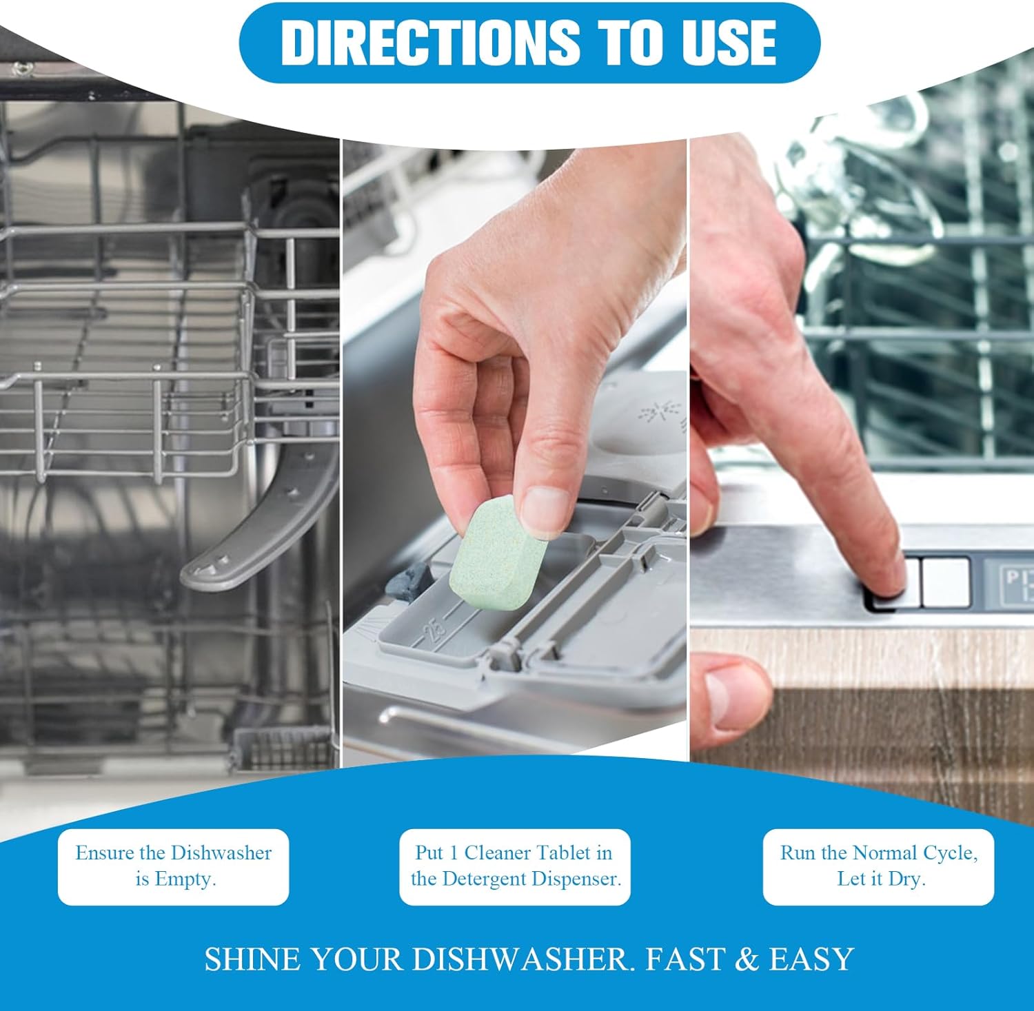 [Easy Maintenance] Compared to traditional detergents, these dishwasher cleaner eliminate the tedious cleaning process and the hassle of managing dosage. Simply empty your dishwasher, remove 1 tablet from its individual packaging, place it in the detergent dispenser, and run the normal cycle. This not only maintains optimal performance but also effectively extends its lifespan, saving you maintenance costs.