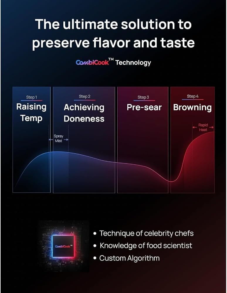 Unlike traditional cookers, the Air Fryer Cooker’s smart algorithm mimics the decision-making process of professional chefs. It divides the cooking into precise steps, optimizing each phase to enhance flavor, texture, and aroma. This approach not only simplifies cooking but also elevates the quality of your meals to restaurant standards.