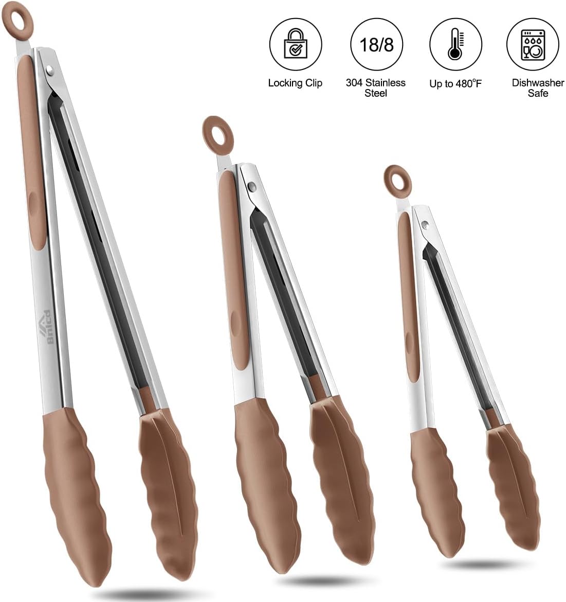 Customers find these kitchen tongs sturdy enough to pick up beef roasts and appreciate their different sizes that work well with pans. The tongs feature no-slip perfection, and one customer notes the silicone tips are removable for easy cleaning. Customers find them useful for various kitchen tasks and consider them good value for money.