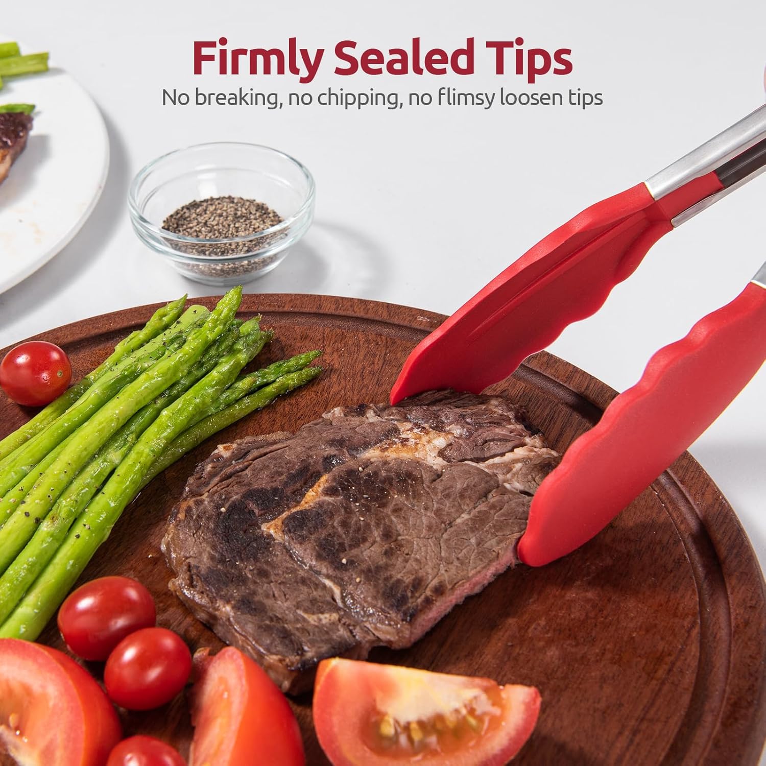 [Heat Resistant Silicone Tips without Melting & Odor] The silicone tipped tongs are made of Food Grade silicone, which is more Sturdy and has higher heat resistance (up to 600℉) than the basic. The silicone tips make them a great partner for your nonstick pans and pots. No more sharp tips to scratch or ruin your cookware. They are heat resistant, so no more silicone parts of the tongs melt off with heat again! Thanks to fine workmanship, the silicone tips firmly sealed on never lose its grip.