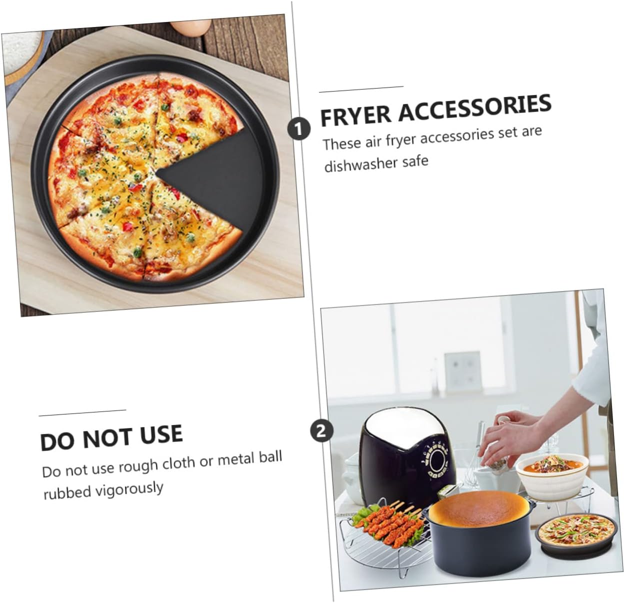 Kitchen Tools Especially, cake barrel and pizza pan using materials, there is a protective layer on the air fryer accessories surface, don’t use hard things to rub, your cake will not have black paint.Frying Tools These are practical air fryer accessories, which are specially designed for food frying